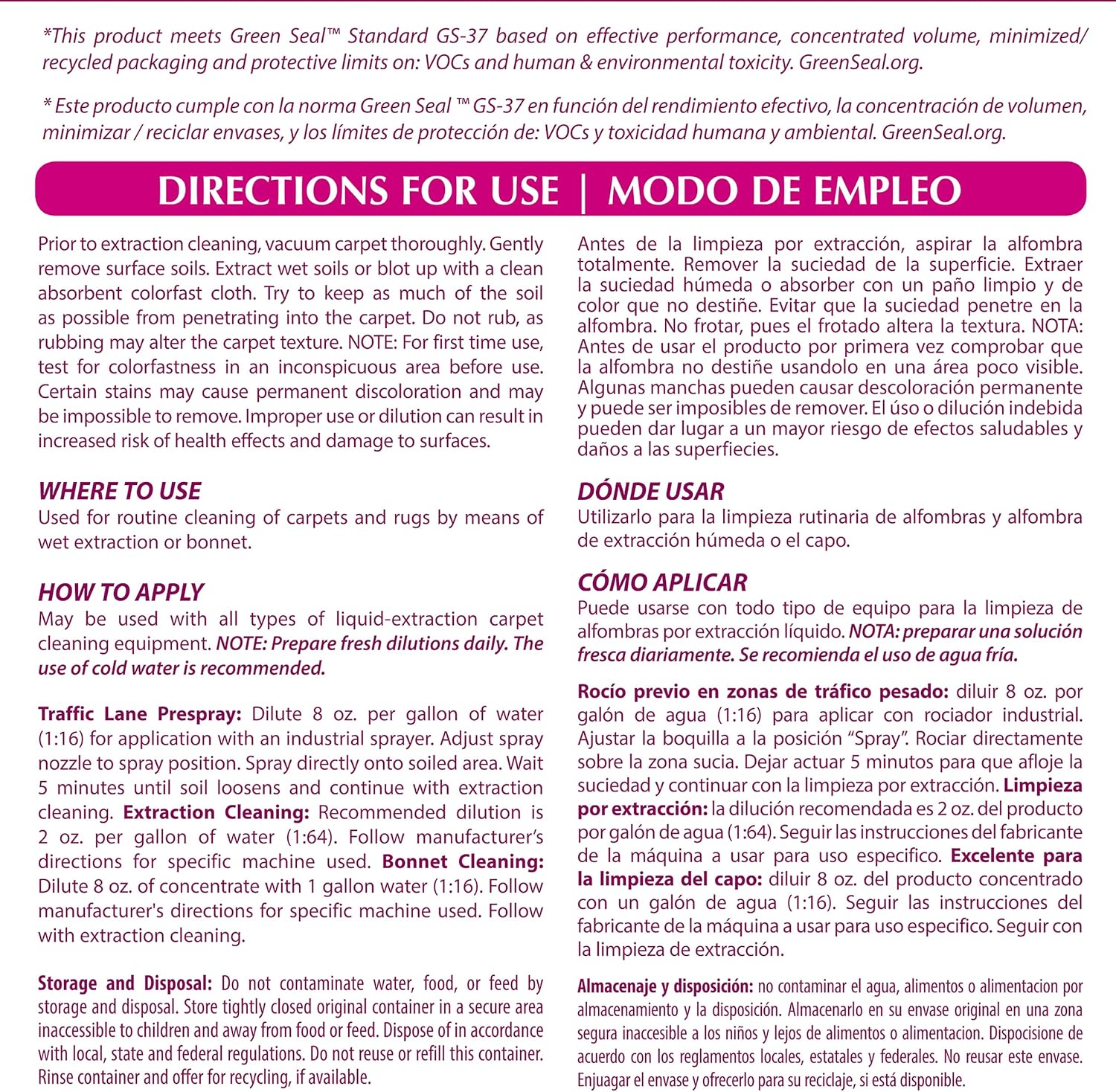 - Preparation: This low foaming, fast drying formula can be used with all different types of carpet cleaning machines for liquid extraction. Use on all carpet fiber types, residential and commercial carpets, area rugs, stain resistant carpets.