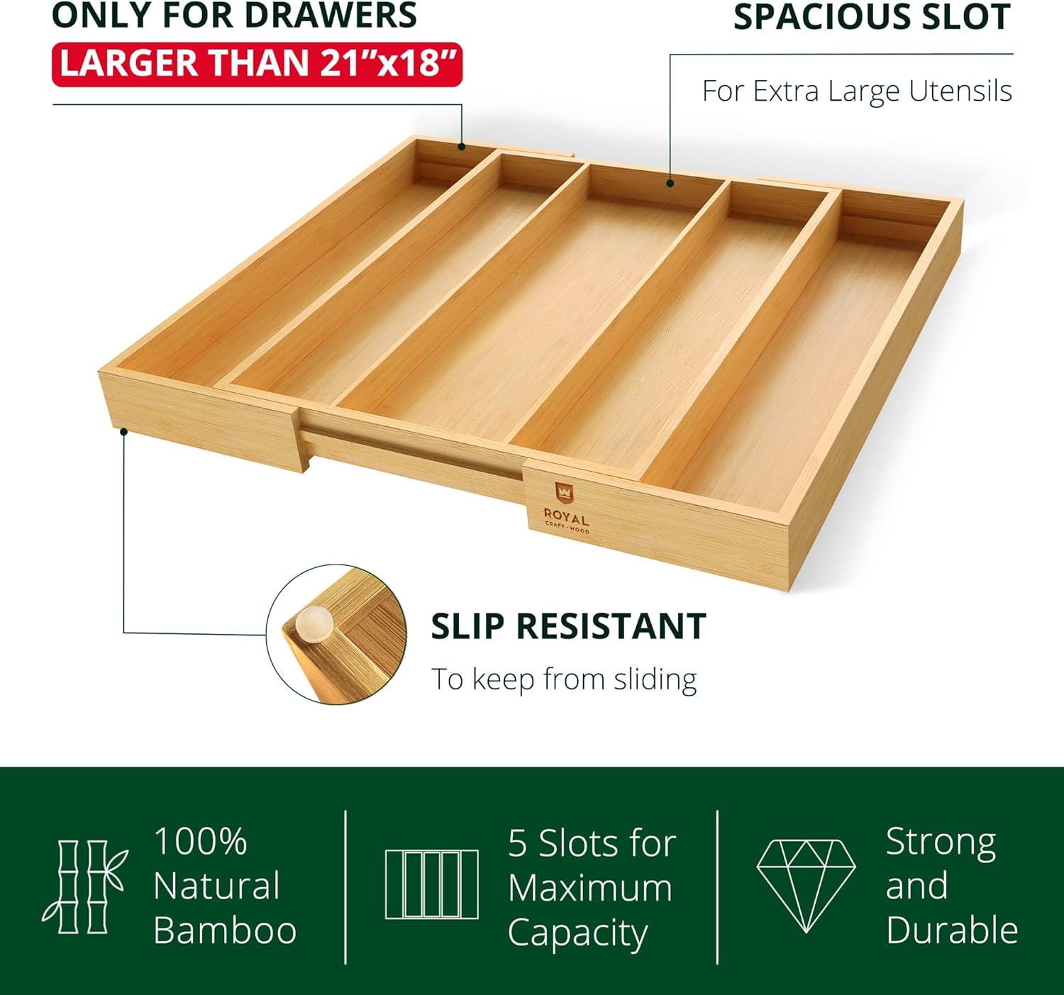 - πππππππ ππππ ππππππ πππ πππ ππππππππ: Please be aware that the Royal Craft Wood Silverware Organizer is a bit deeper and larger than some kitchen drawers. We kindly ask that you MEASURE your home drawer prior to purchase to ensure that this product is a good fit. Please ensure that your drawer space intended to be used with the drawer organizer is LARGER than 20x18β wide for a guaranteed, comfortable fit when fully expanded