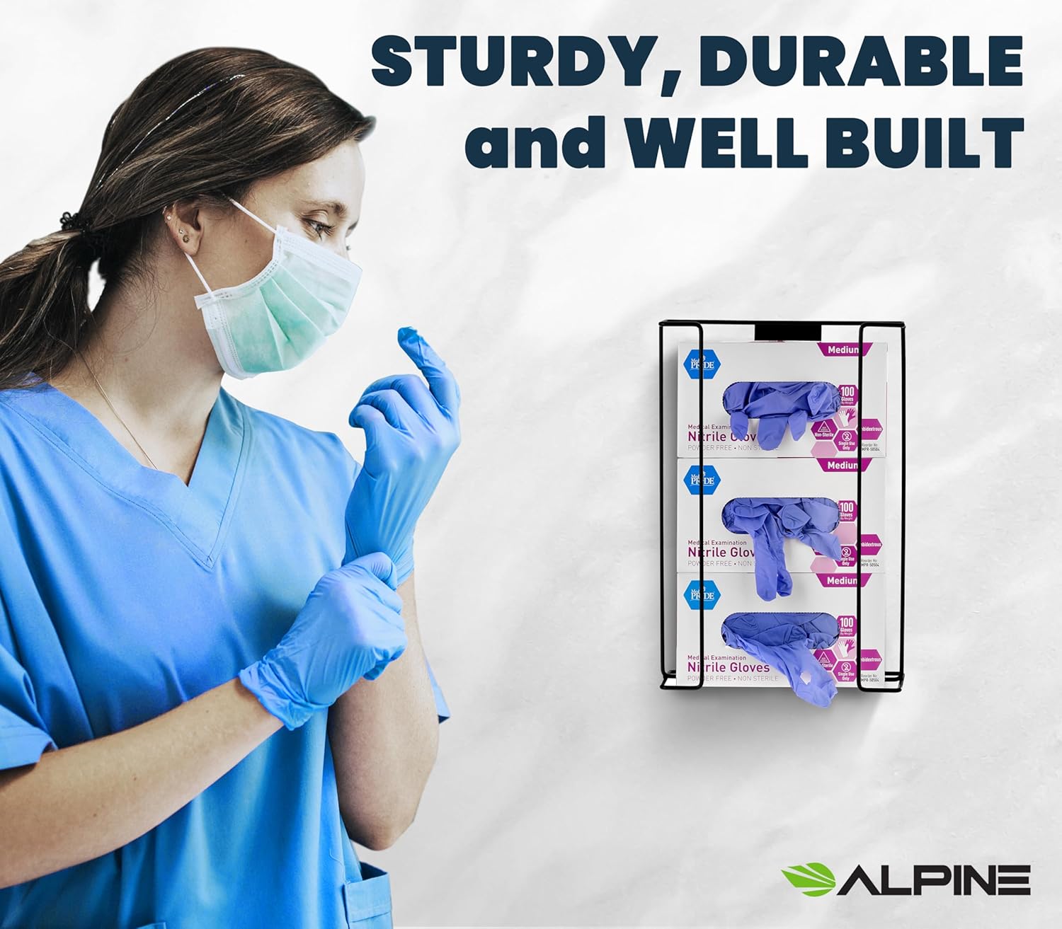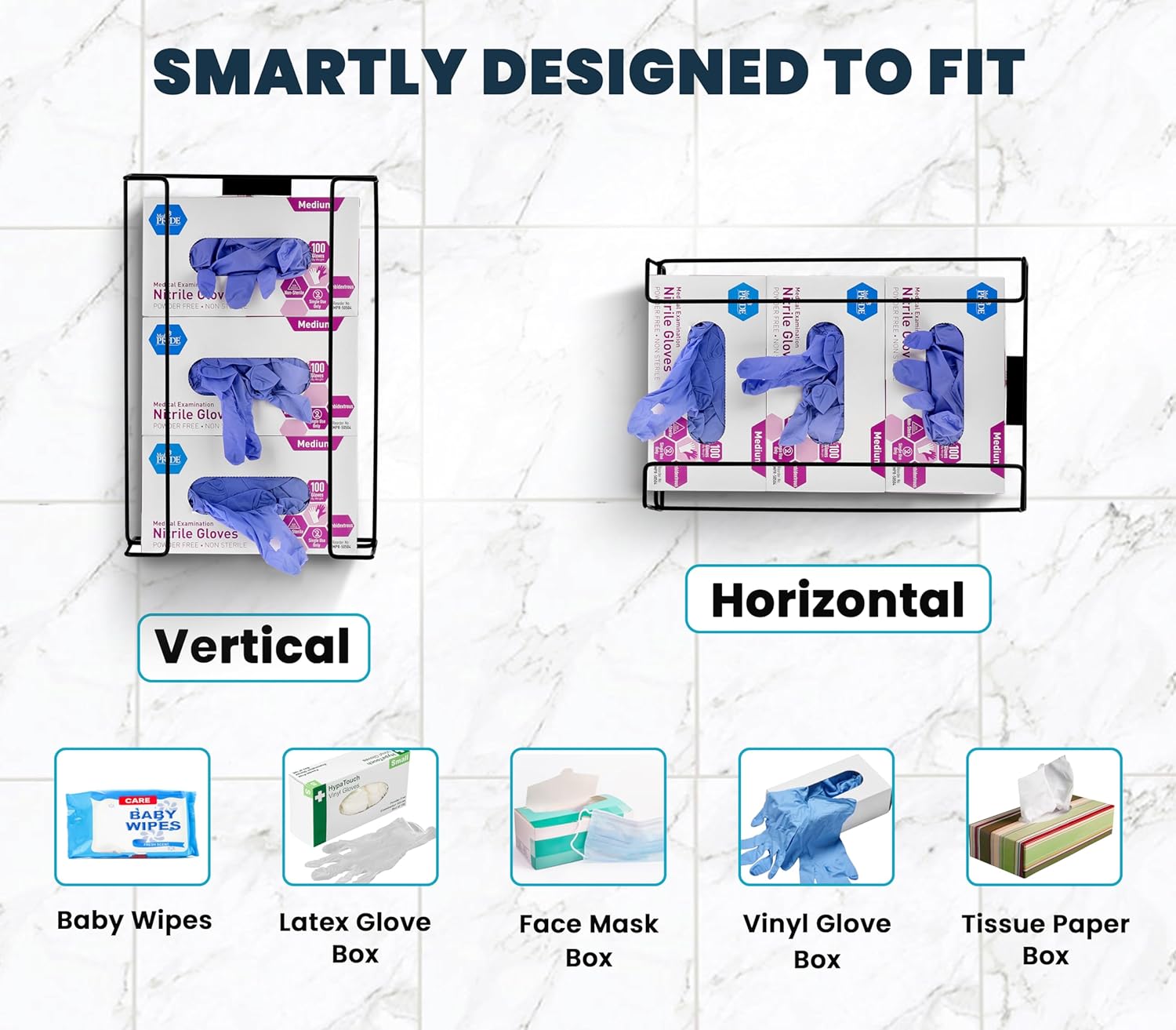Alpine Glove Holder for Wall Mount - Latex Glove Holder Wire Glove Dispenser for Wall Disposable Glove Box & Tissue Box - Fits 3 Boxes (Black)