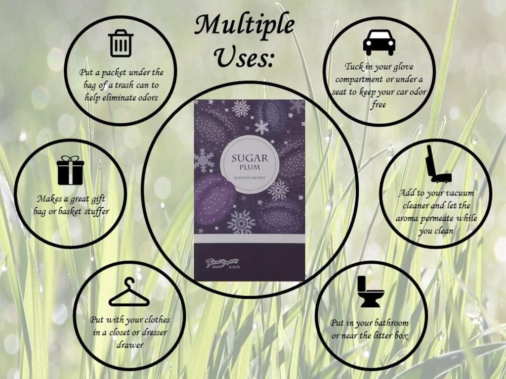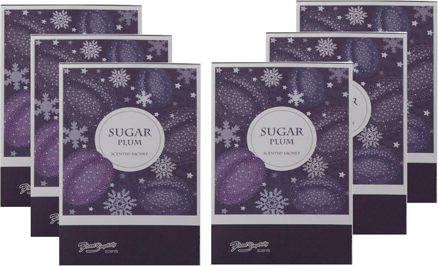 Floral Simplicity Sugar Plum Scented Sachets Pack of 6, Fall & Winter - Long-Lasting Scented Bags, Home Fragrance, Air Freshener & Deodorizer for Closet, Room, Drawer, or Cars, Made in USA