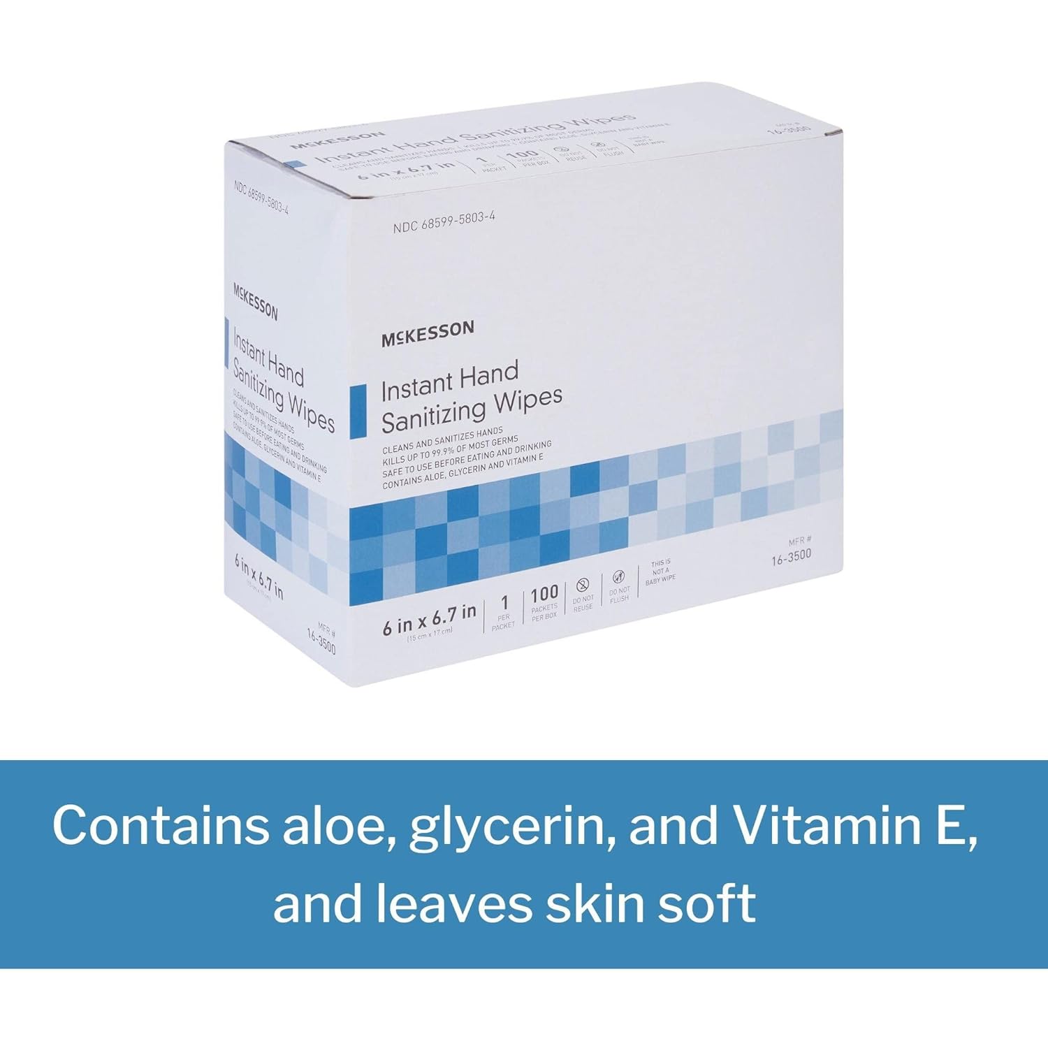 McKesson Hand Sanitizing Wipes [100 Count] Alcohol Wipes with Aloe and Vitamin E, Travel, Individually Wrapped