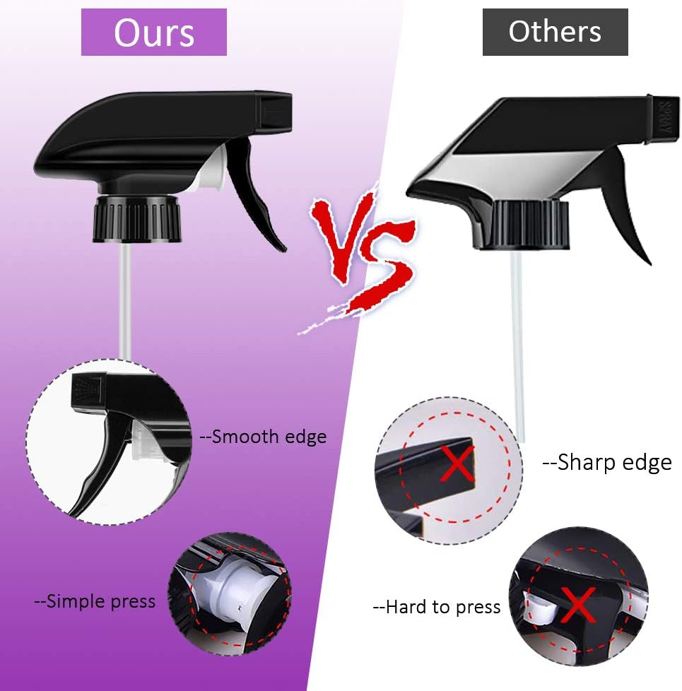 - ❤【GREAT DESIGN FITS YOUR HAND & 3 SETTINGS】 - The BETTER TRIGGER DESIGN with 4-finger trigger makes your fingers rest easily on it and the bottle fit comfortably in your hand, eliminating hand fatigue; Adjustable black nozzle turns easily letting you switch from mist, stream or to off; Pull trigger has a short effortless squeeze reducing finger fatigue.