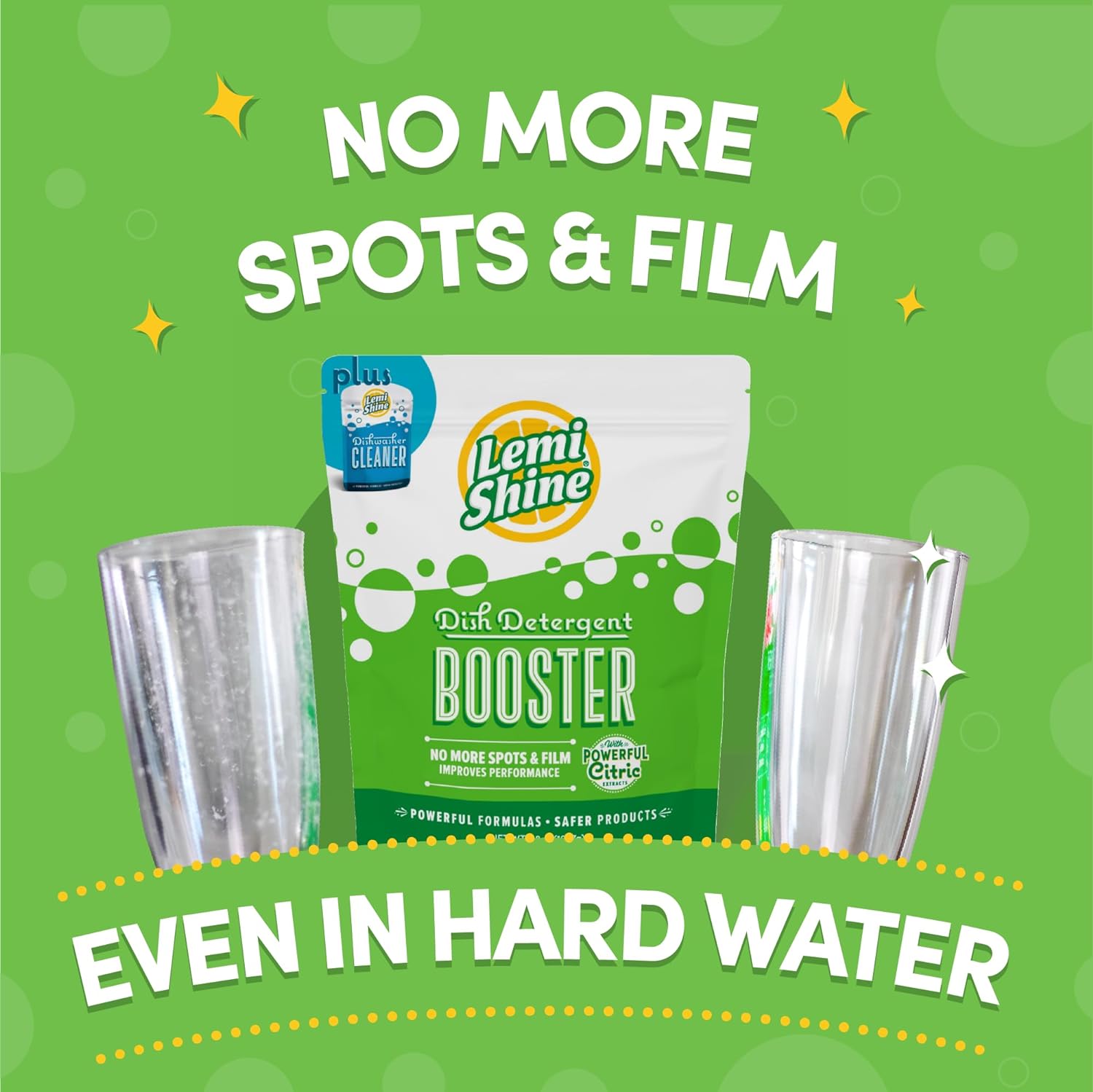 - 100% GUARANTEED HARD WATER CLEANER: Our powerful booster solution is here to save your favorite glassware, coffee maker, and dishes; Add to your dishwasher and watch those hard water spots, film, and other mineral deposits disappear