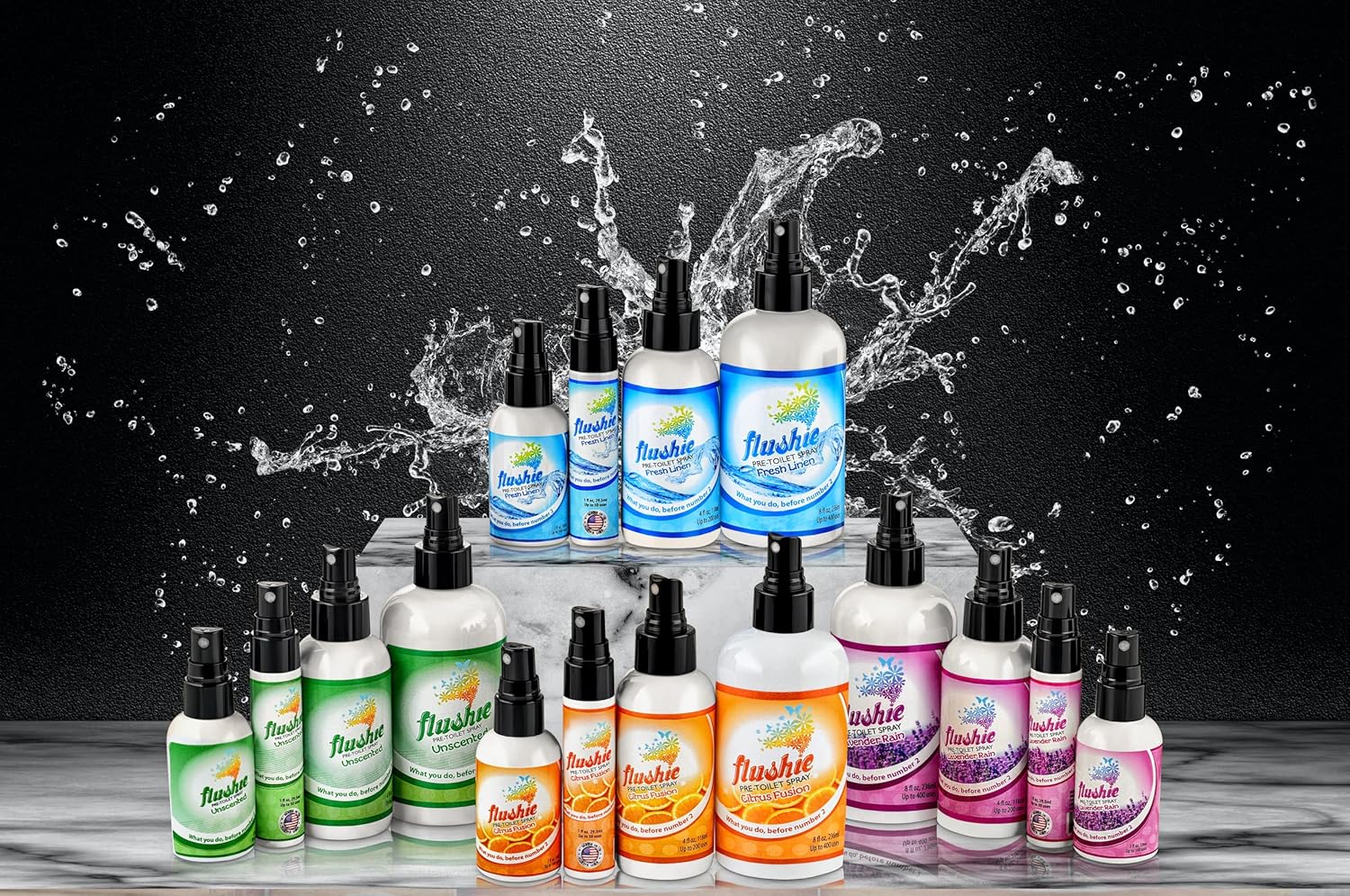 Flushie Pre-Toilet Spray Travel Size Toiletries Bathroom Spray for Toilet Deodorizer Traveling Essentials - Poop Odor Eliminator (Linen, 1oz 3pack)
