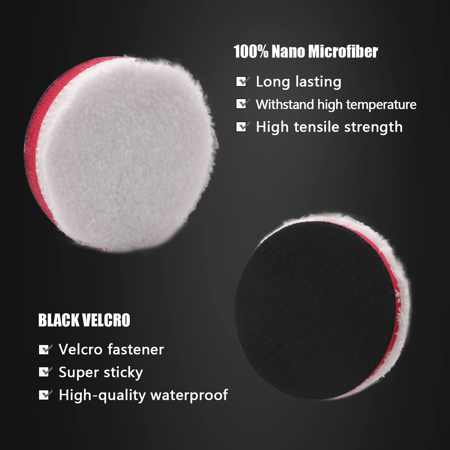 - 【PACKAGE INCLUDE】15pcs 3 inches sponge polishing pads, 1pc 3 inches 5/8-11 thread backing plate, 1pc 3" woolen buffer pad, 1pc 3" microfiber buffing pad, 1pc 5/8-11 thread drill adapter, 1pc multi-functional pads cleaning brush.