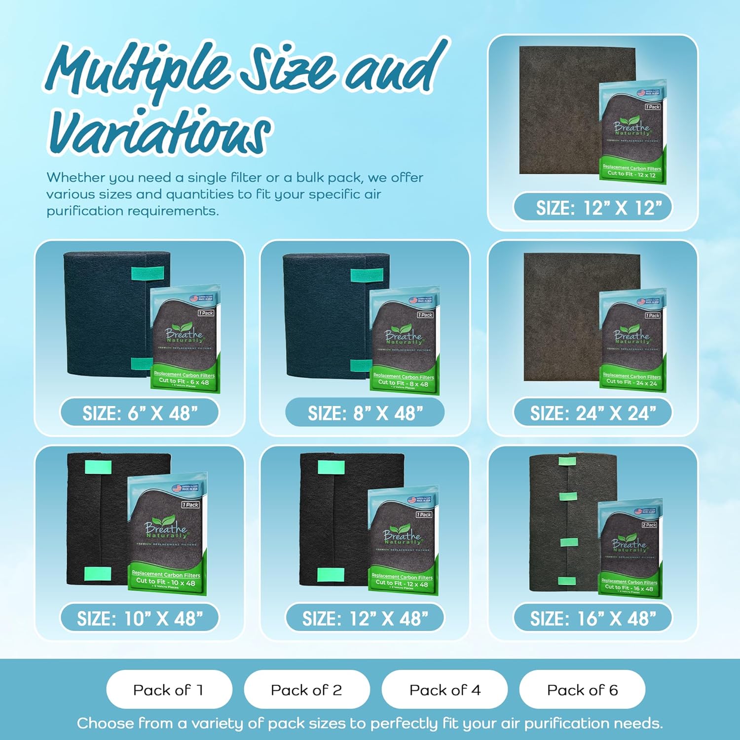 • MULTIPLE SIZE AND PACK: Available in various sizes, these filters come in packs of 1, 2, 4, or 6, catering to your specific needs. Whether you need a single or multiple filters, these options provide convenience and value, allowing you to maintain optimal air quality in your home with regular filter replacements tailored to your needs.