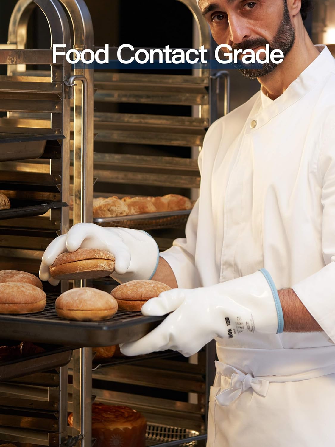 - Food Grade Liquid Silicone glvoes - Our baking gloves are made of non-sticky liquid silicone, the most advanced materials for oven gloves. These gloves possesses high tensile strength, stands up to daily use, and maintains its performance day after day. Our company is THE FIRST COMPANY to bring liquid silicone gloves to the market.