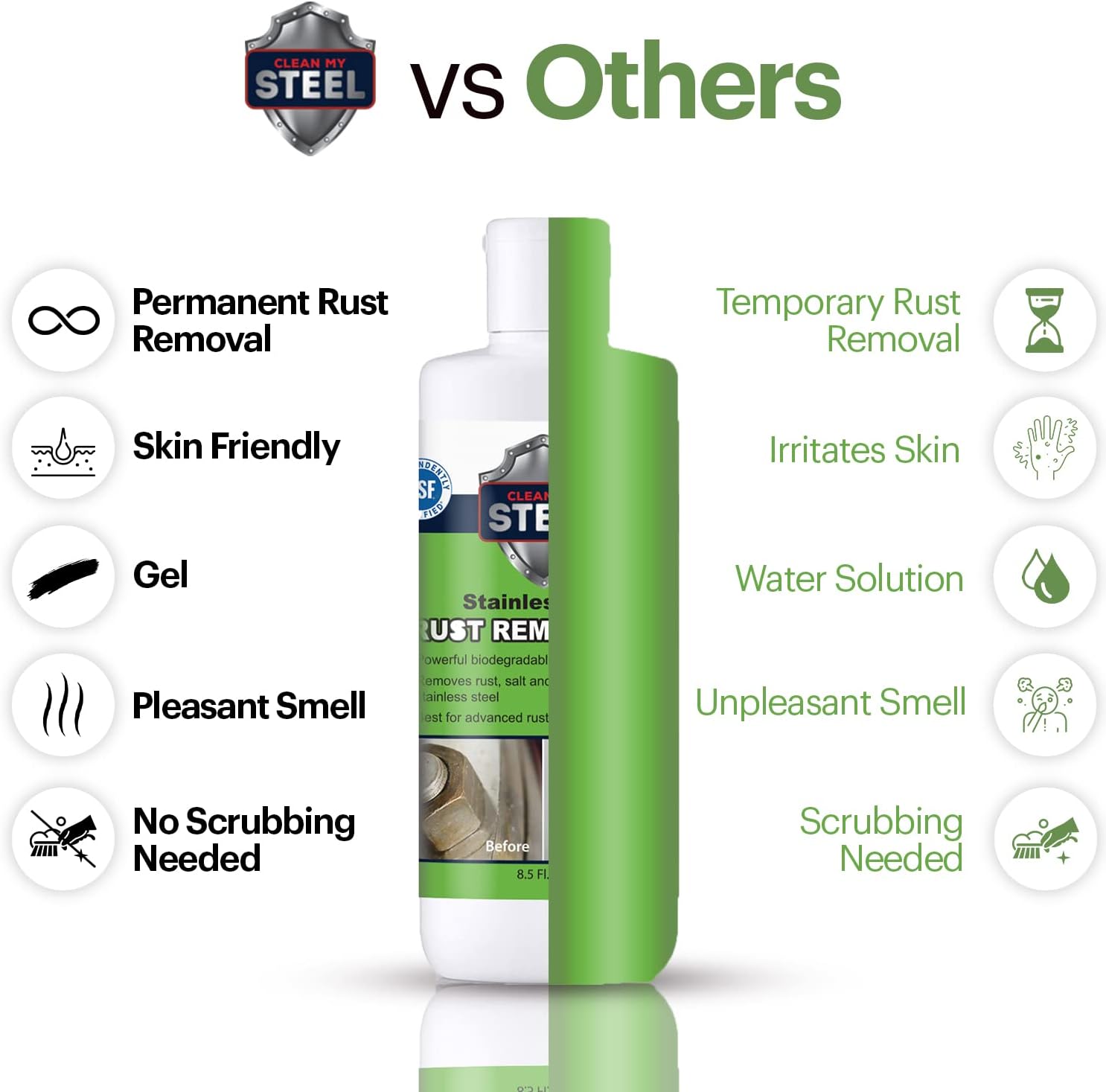 - Safe and Gentle Rust Stain Metal Treatment - Safe and effective rust remover for metal surfaces. Rescue stainless steel, nickel, copper, brass, chromium, and aluminum, without fear of damage, thanks to its gentle cleaning action. Simply the best rust remover!