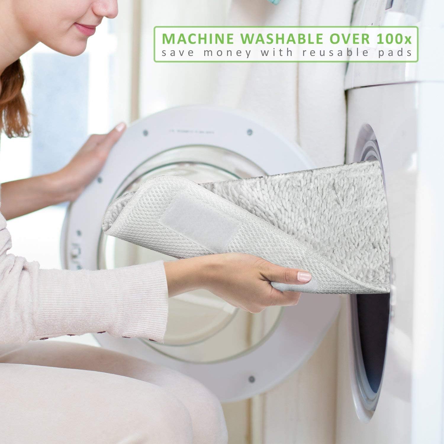 - Washable & Durable Mop Pads: This durable microfiber pad can be washed up to 100 times in your washing machine to save money and protect the environment.