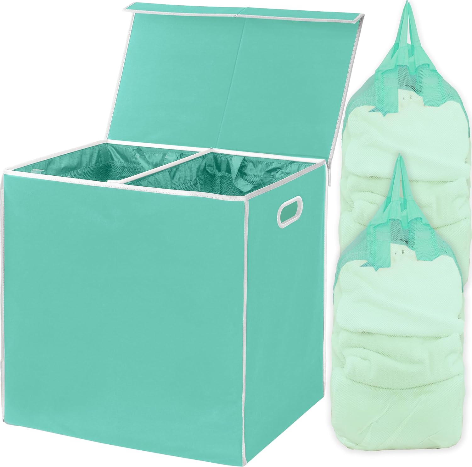 Simple Houseware Double Laundry Hamper with Lid and Removable Bags, Turquoise
