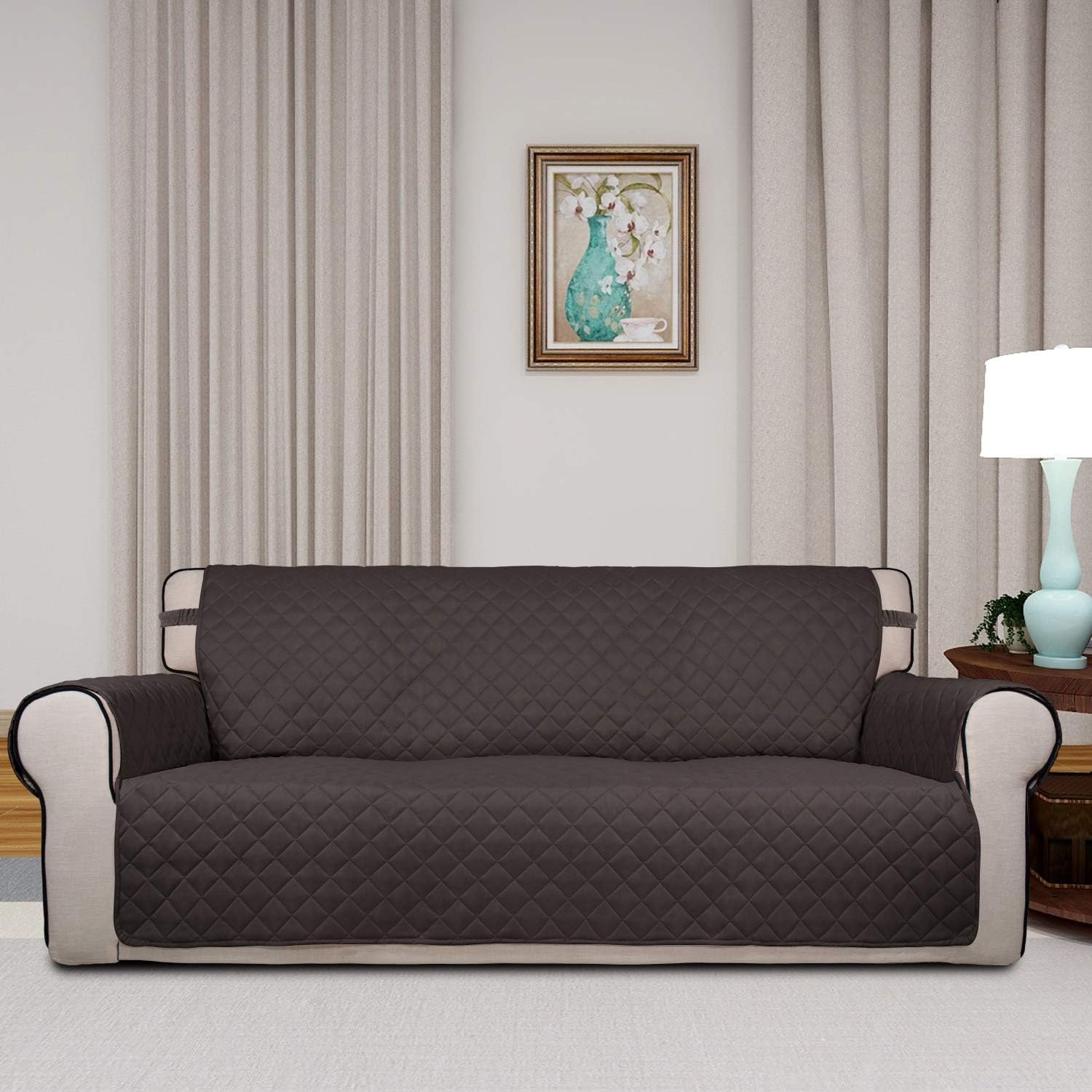 PureFit Reversible Quilted Sofa Cover, Water Resistant Slipcover Furniture Protector, Washable Couch Cover with Non Slip and Elastic Straps for Kids, Pets (Sofa, Chocolate/Chocolate)