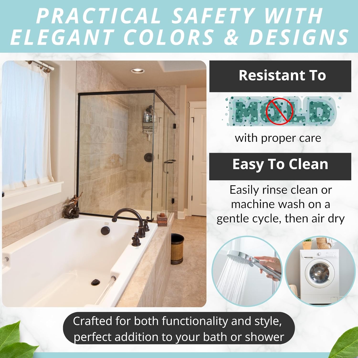 - Modern, Sturdy & Made To Last: Complement your stylish bath rugs dΓ©cor with an eye-catching bath mat in many color variations. Place it in the washing machine, to keep it fresh, clean and hygienic for a long time!