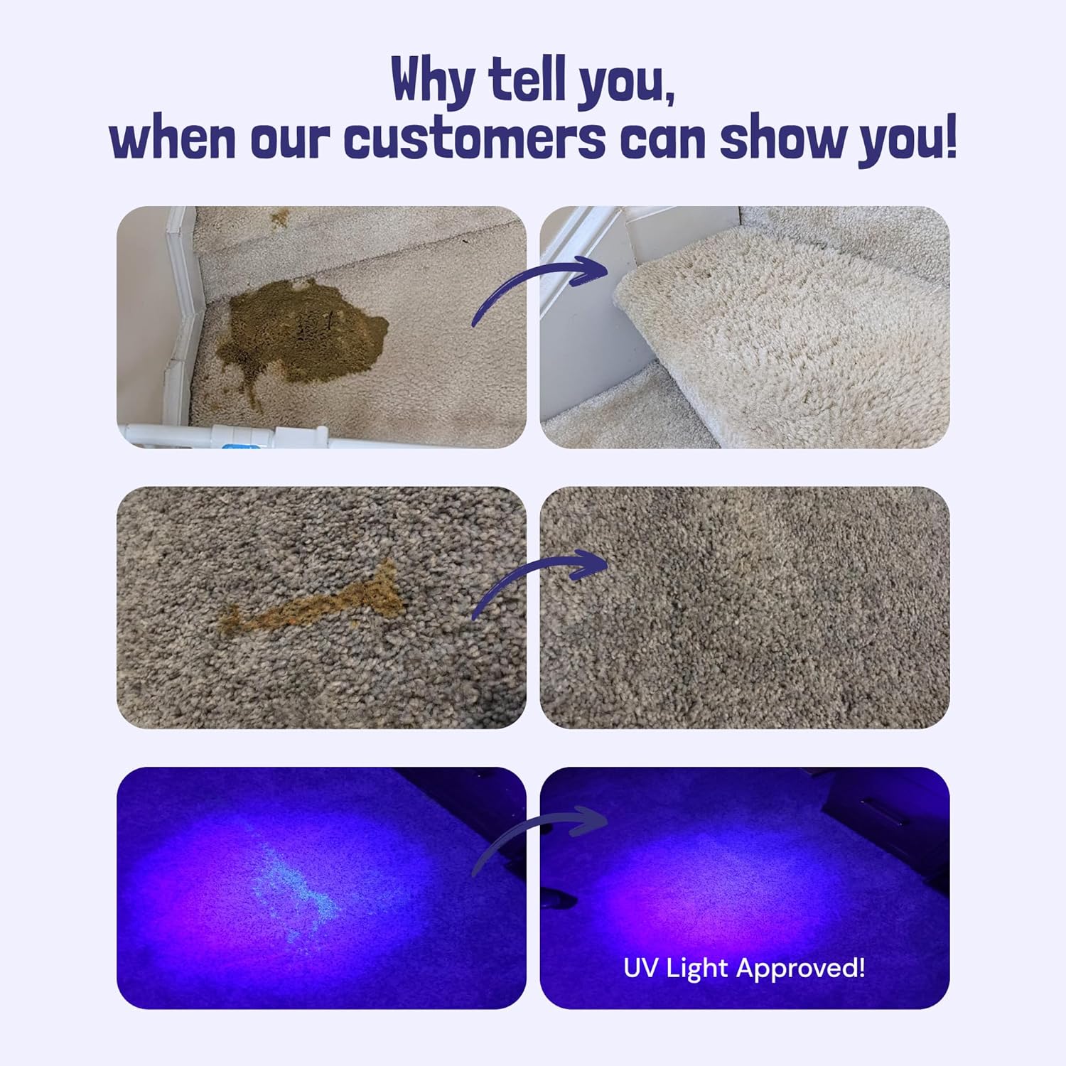 - Safe and Gentle: Feel good about using a pet carpet cleaner spray that's gentle on your family and furry friends. The clean ingredient formula of this carpet stain remover spray keeps your home free from harsh odors, perfect for holiday gatherings or cozy nights with your pets