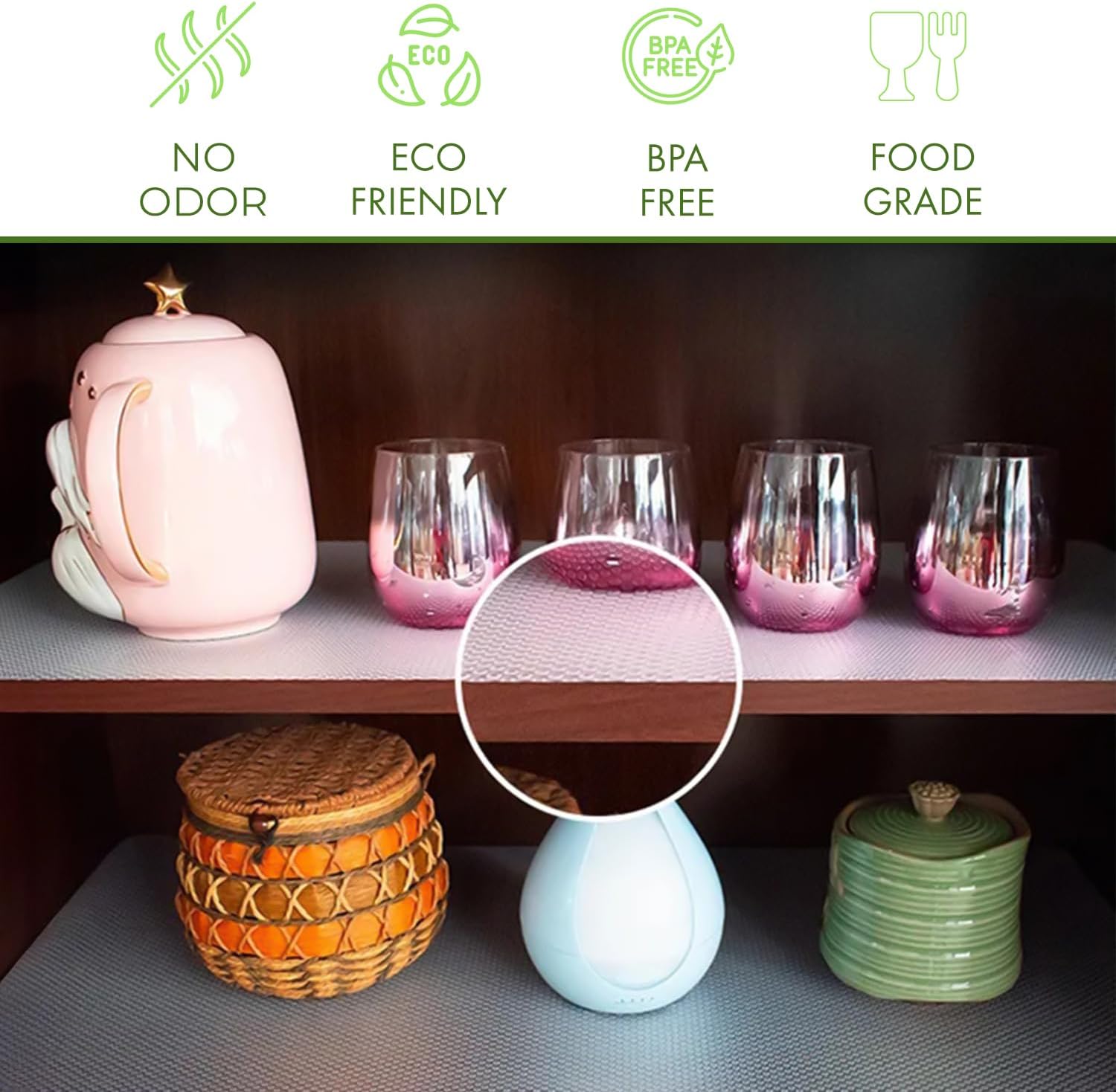- Non-Slip Design: Our cabinet and drawer liners ensure safety with a non-slip surface, preventing items from sliding. These cabinet drawer liners offer optimal stability, making them the best rated shelf liner for secure organization.