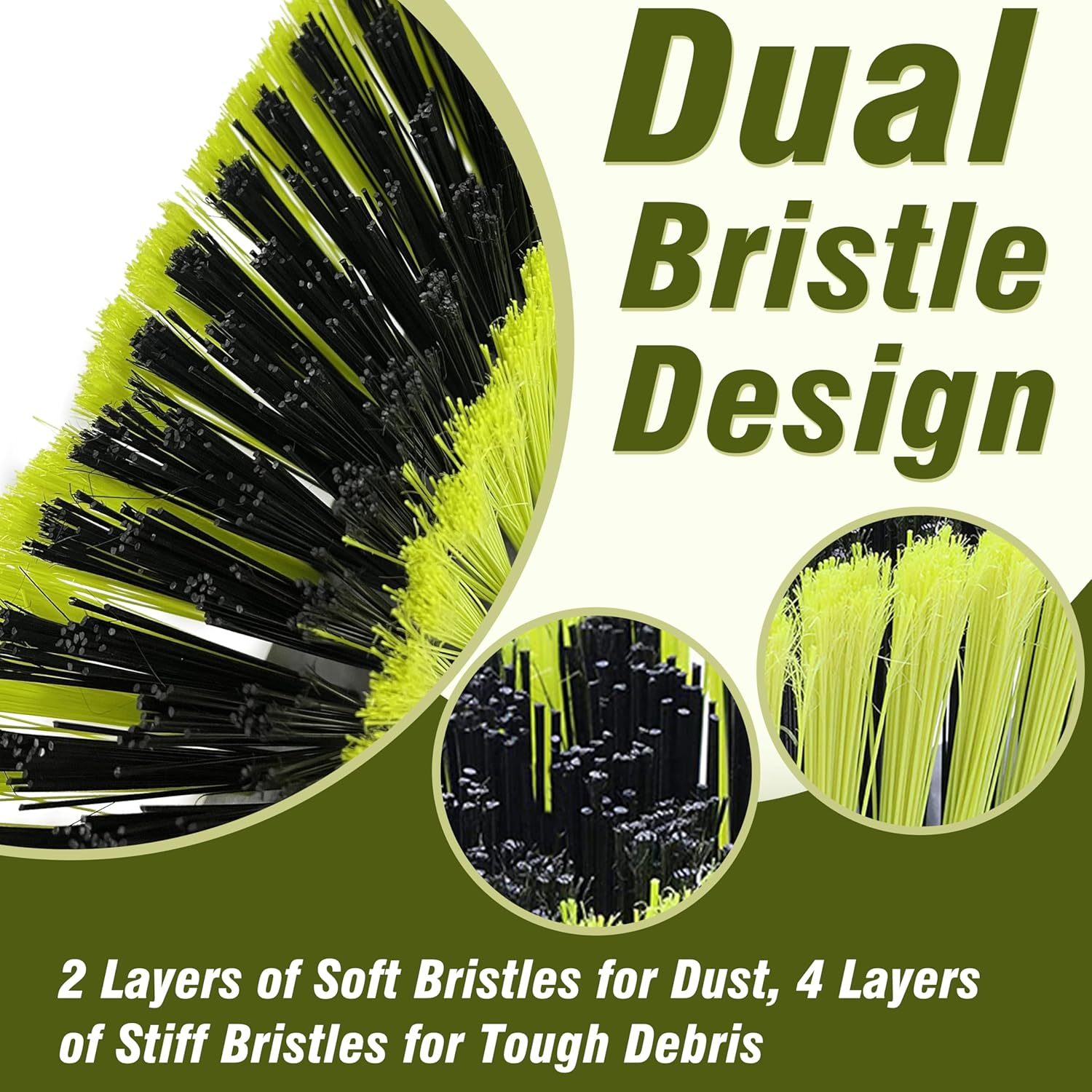 - Built to Last: The 18-inch brush head was crafted from solid molded polypropylene, featuring the 4 layers of soft bristles and 2 layers of stiff bristles, the push broom is engineered for durability.