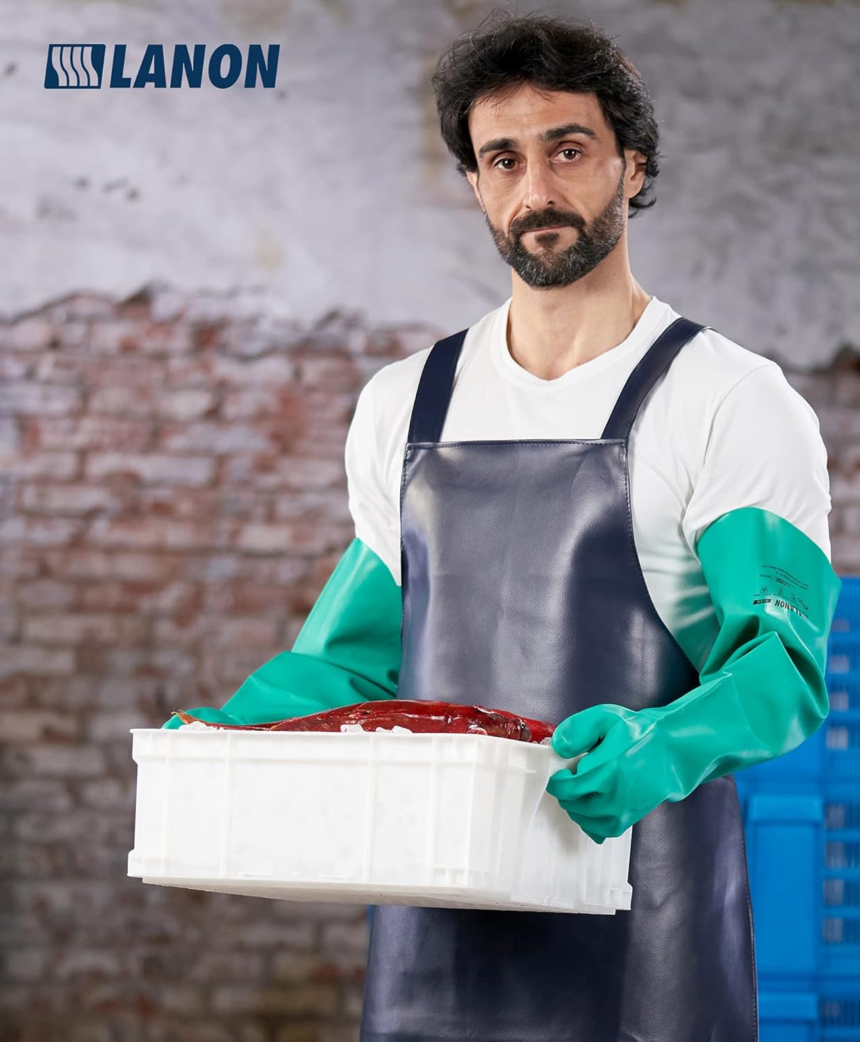 LANON Nitrile Chemical Resistant Gloves, Reusable Heavy Duty Safety Work Gloves, Acid, Alkali and Oil Protection, 18" Length, Non-Slip, XL