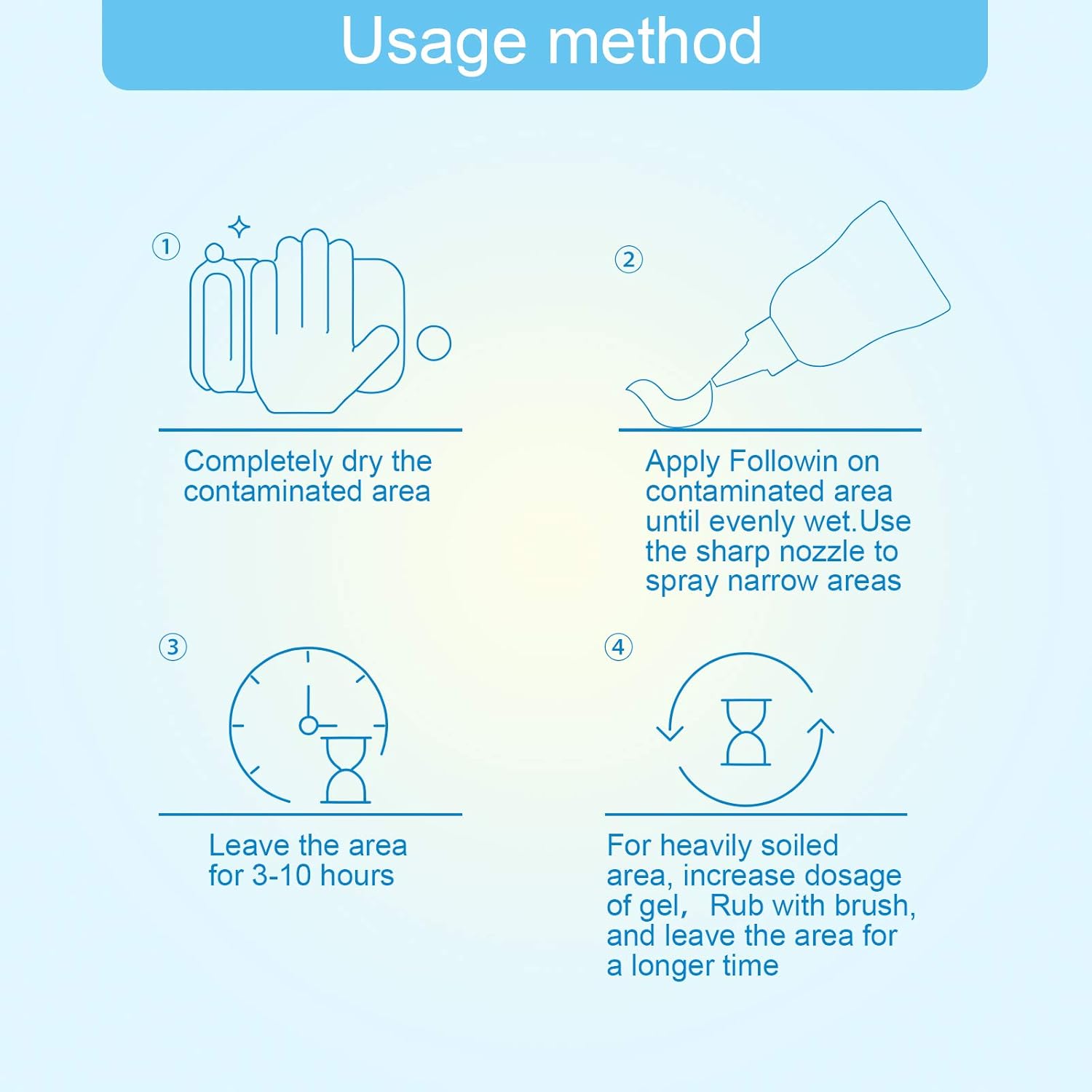 - Safe For Virtually Any Surface:The mold stain remover gel is bleach-free,non-acidic,biodegradable, and eco-friendly.The odor is much lower than ordinary spray cleaners,no strong pungent smell.Keep the space ventilated during use to let fresh air circulate,always follow the step-by-step instructions provided to achieve the best cleaning results.Do not mix with other cleaning products.