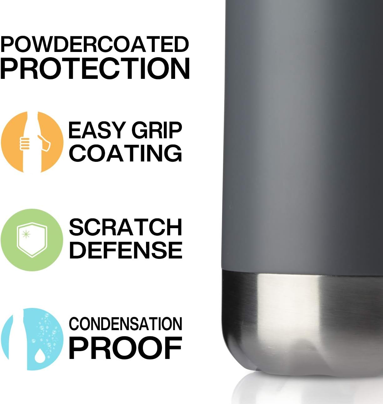 - DURABLE QUALITY:This sleek and rugged sports water bottle is made from high quality food grade 18/8 stainless steel that will not break. Scratch resistant and easy to clean. Stylish solid color design that looks cool