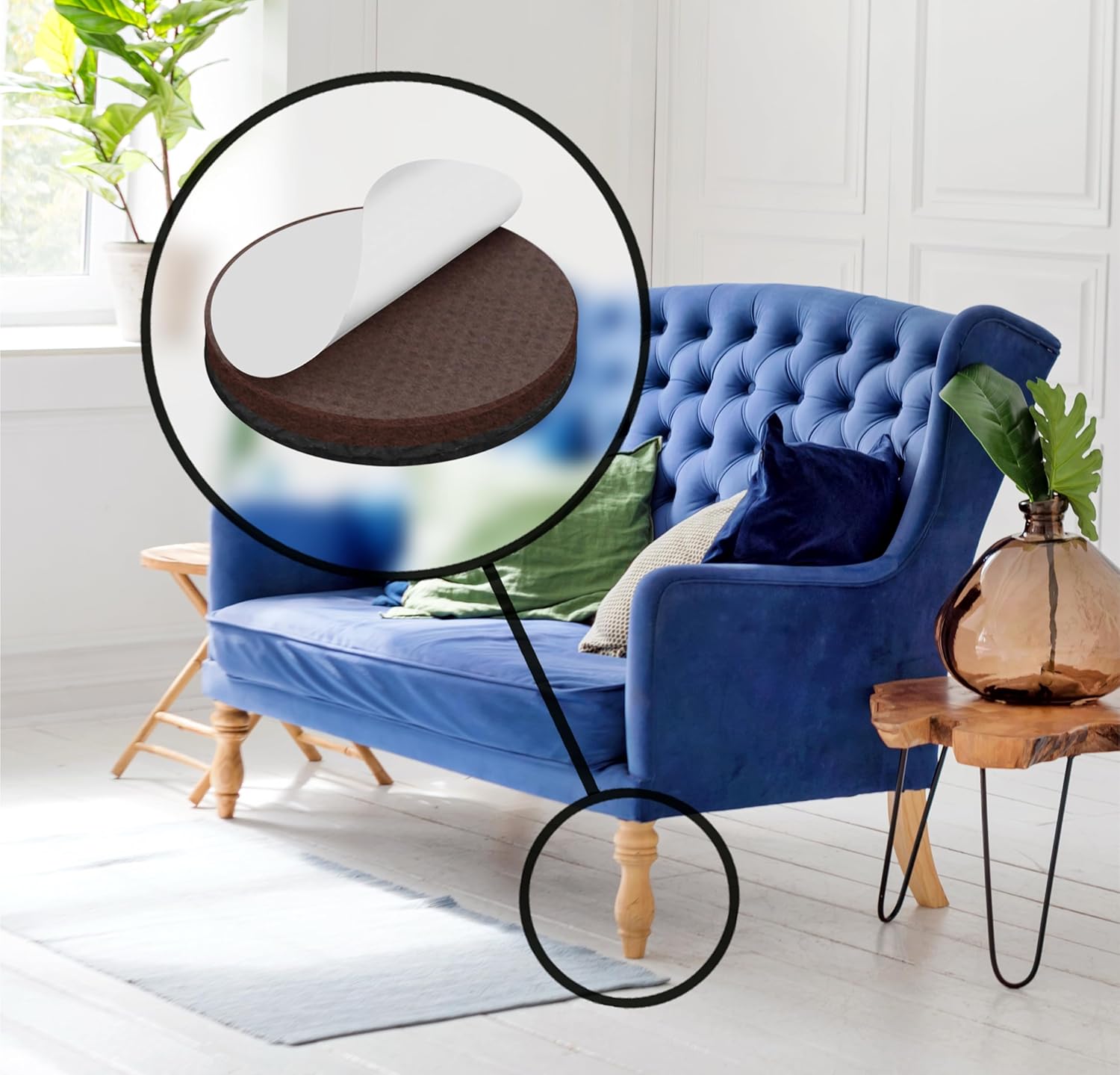 - Heavy duty self adhesive to stay on furniture β Each round furniture grip pad features a strong adhesive backing for quick and easy attachment under furniture and objects. Simply clean off the furniture feet, peel off the adhesive backing and stick on premium furniture pads.