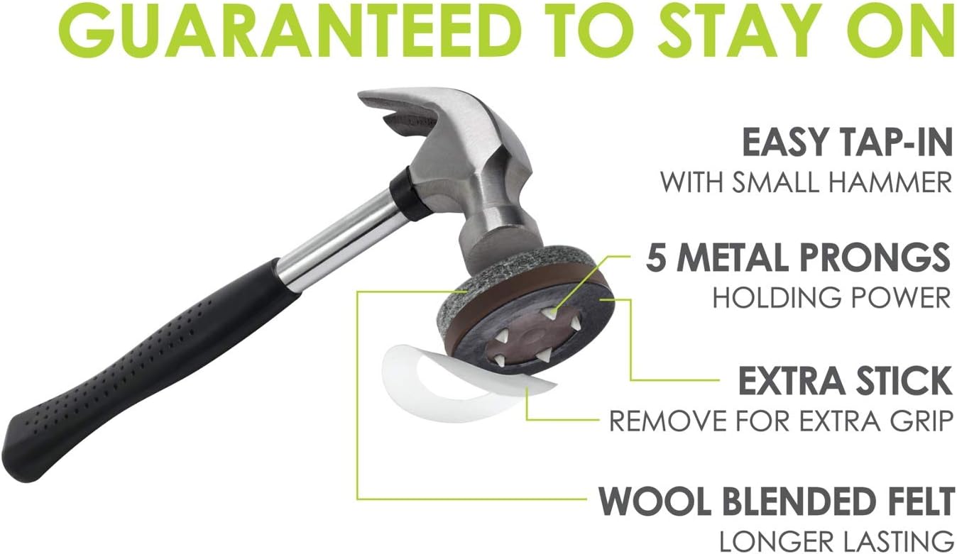- Quick & easy installation β Includes 4 x 1.5 inch felt furniture feet glides that install in seconds with the tap of a hammer, simply clean the bottom of furniture leg, peel off adhesive backing from furniture glide, position on furniture and then nail on felt pad.