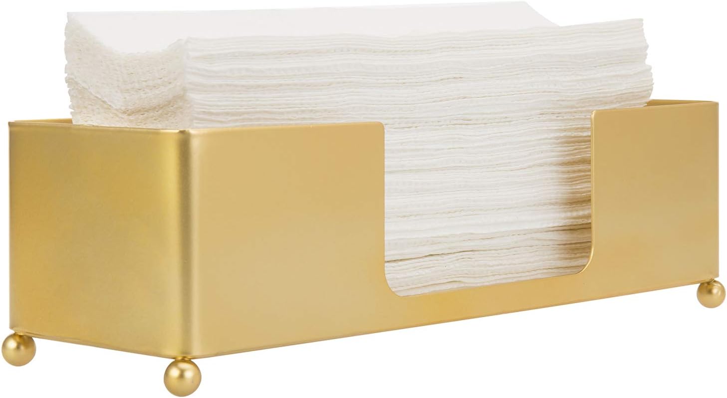 - Modern brass tone metal tabletop paper towel holder dispenser perfect for stylishly storing paper towels in any home, office, restaurant or retail bathroom setting
