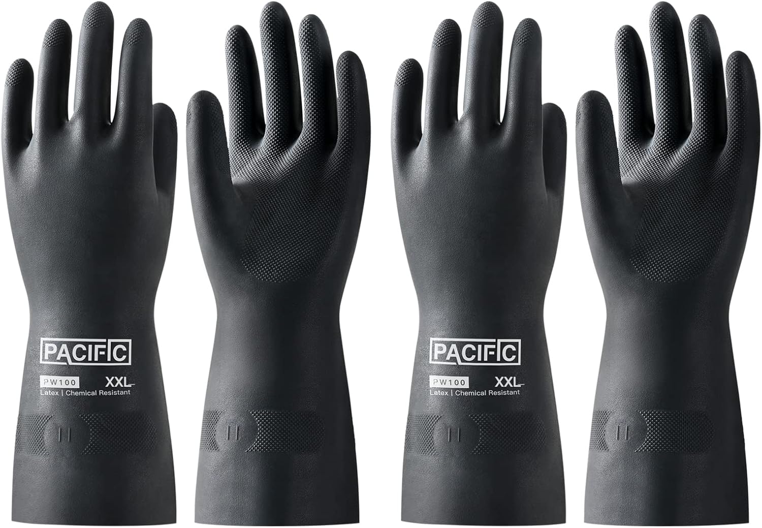 PACIFIC PPE 2 Pairs Chemical Resistant Gloves, Heavy Duty Industrial Rubber Gloves, Resist Acid, Alkali and Oil, 12.6", XX-Large