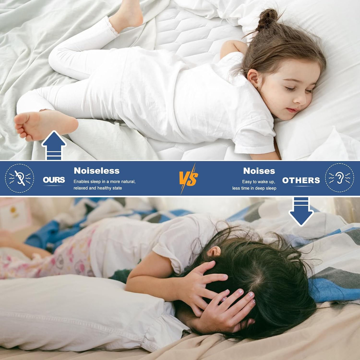 - SAFE BED PAD COVER: The twin xl mattress protector safeguards your mattress against fluids, urine and perspiration, providing a cleaner and more comfortable environment for you and your family. The waterproof twin xl mattress protector is vinyl-free and ideal for children and the elderly.