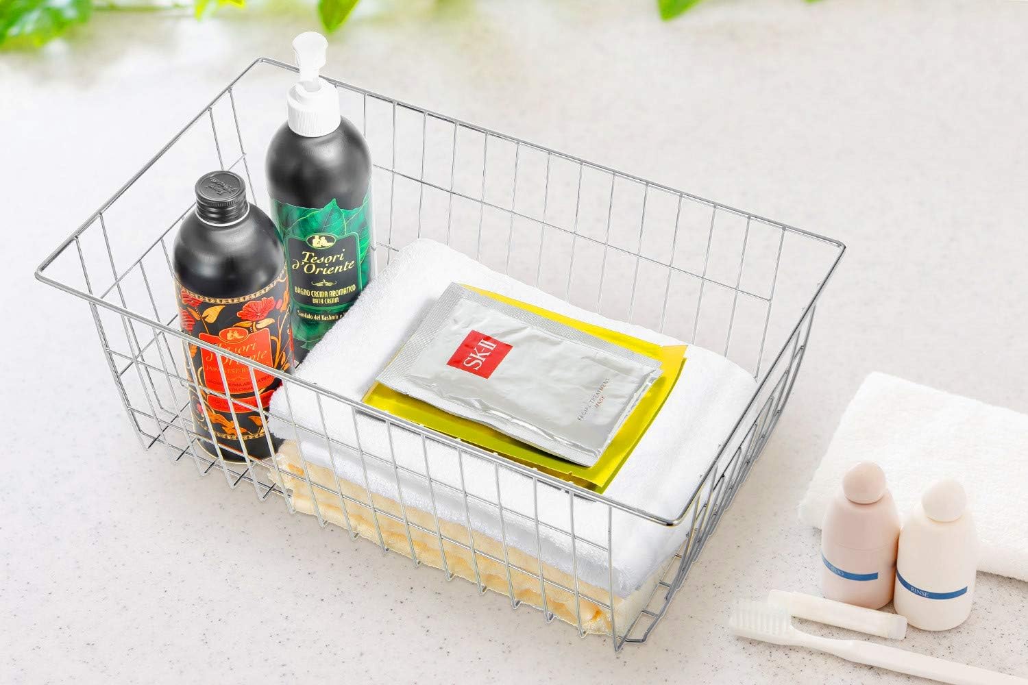 Freezer Wire Storage Baskets,Farmhouse Organizer Storage Bins Large Organizer Bins for Laundry Room, Closets, Garage, Office, Bathroom, Pantry Organization Storage Bins -Set of 2 (Chrome)