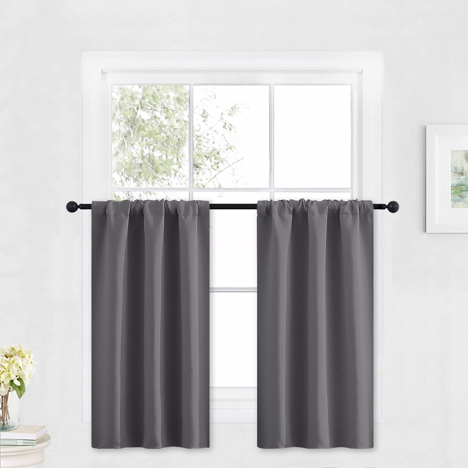 RYB HOME Blackout Curtains for Bathroom - Solid Light Block Blinds Privacy Light Block Drapes for Kitchen Cabinet Kids Nursery Bedroom Laundry Cafe Window Decor, W 29 x L 36, Grey, 1 Pair