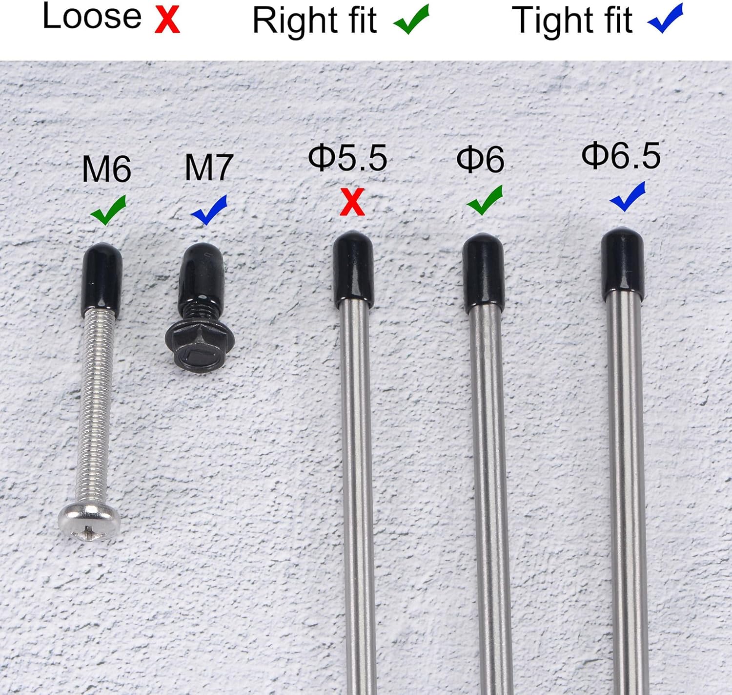 - 【Size Selection】Because rubber material is soft and elastic, we recommend choosing rubber end cap that is slightly smaller than the outer diameter of the product to be protected. For example: the outer diameter of your product is 9.8mm dia, choose the rubber cover of 9.5mm!