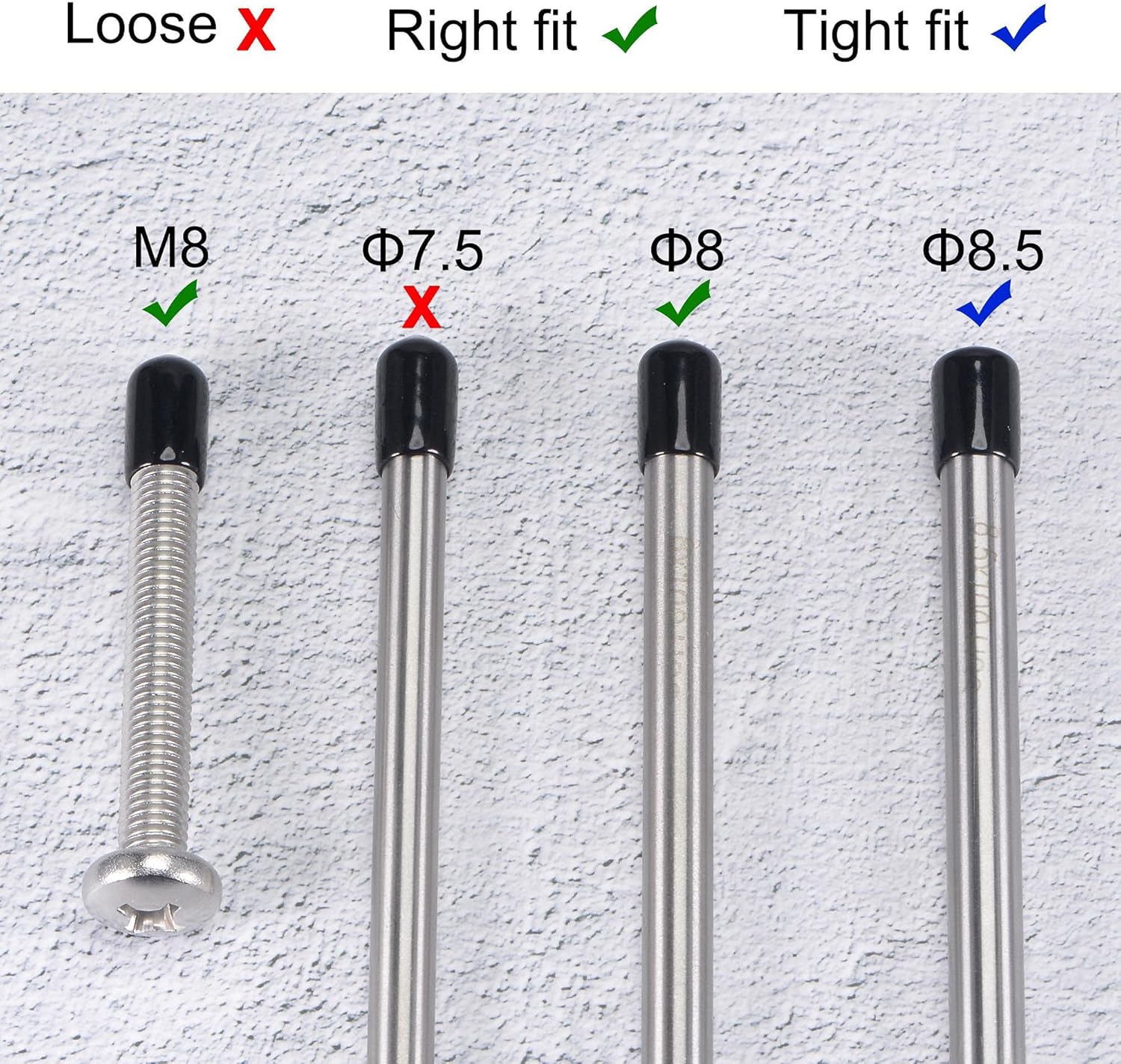 - 【Size Selection】Because rubber material is soft and elastic, we recommend choosing rubber end cap that is slightly smaller than the outer diameter of the product to be protected. For example: the outer diameter of your product is 9.8mm dia, choose the rubber cover of 9.5mm!