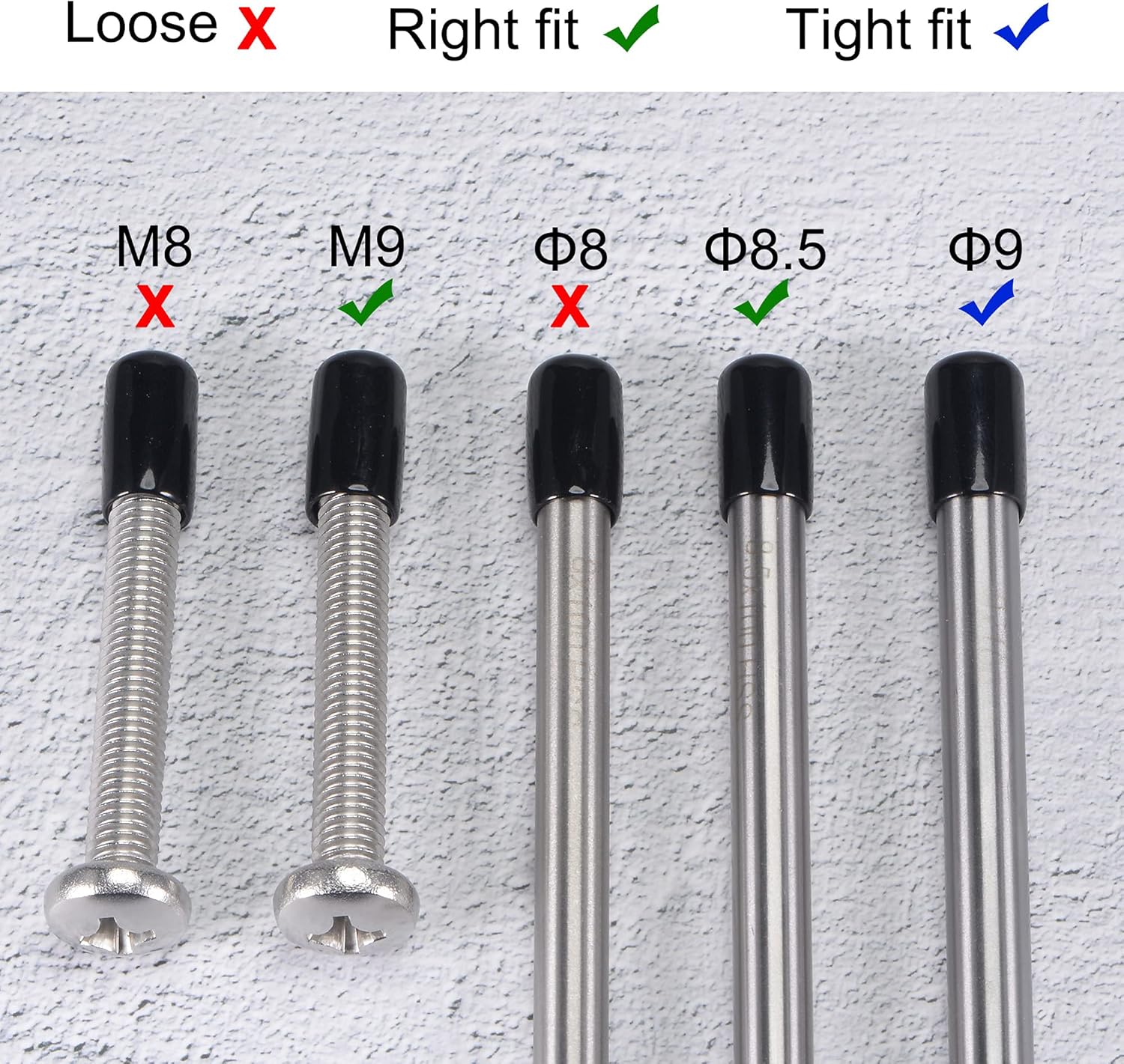 - 【Size Selection】Because rubber material is soft and elastic, we recommend choosing rubber end cap that is slightly smaller than the outer diameter of the product to be protected. For example: the outer diameter of your product is 9.8mm dia, choose the rubber cover of 9.5mm!