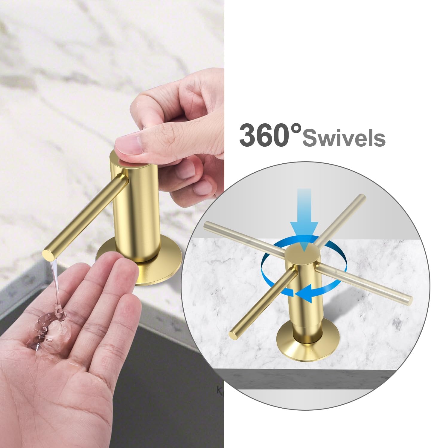 - ✔️ LARGER VOLUME --The soap dispenser for kitchen sink has large capacity (12 oz) bottle, 3" nozzle. Dish soap can be pumped into the sink manufactured with quality materials works as a soap dispenser or as a lotion dispenser.