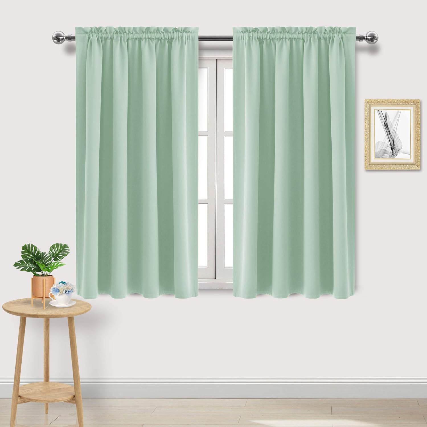 DWCN Blackout Curtains Room Darkening Thermal Insulated Bedroom Curtains Window Curtain Panels, 52 x 54 inches Long, Set of 2 Light Green Rod Pocket Drapes