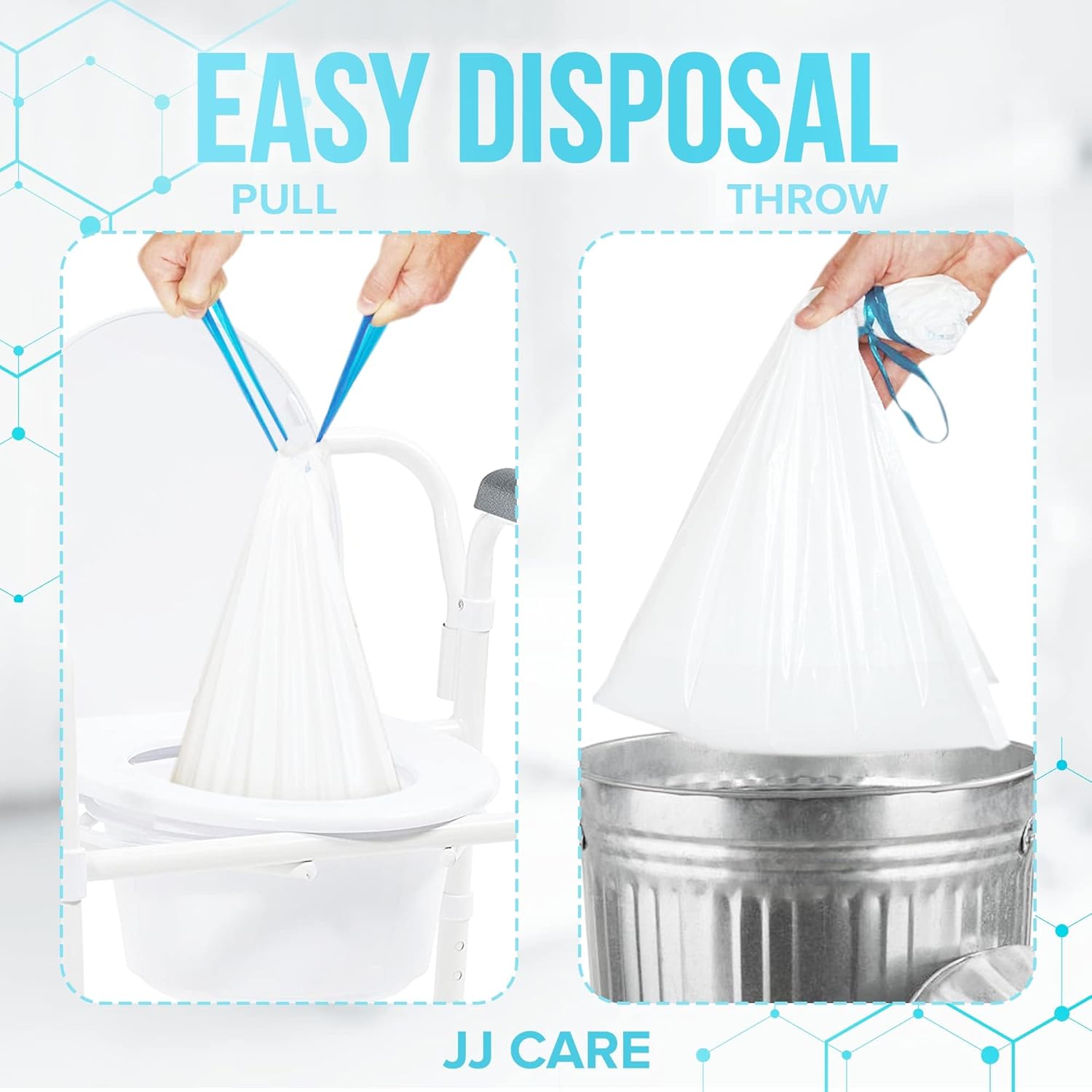 - Disposable Liners – Make patient care sanitary and convenient with JJ Care’s Commode Liners with Absorbent Pads. These leak-proof liners serve as a layer of protection from possibly contaminated body fluids. Avoid cleaning a soiled commode bucket again. Just throw theses away after use and make clean up plain and simple