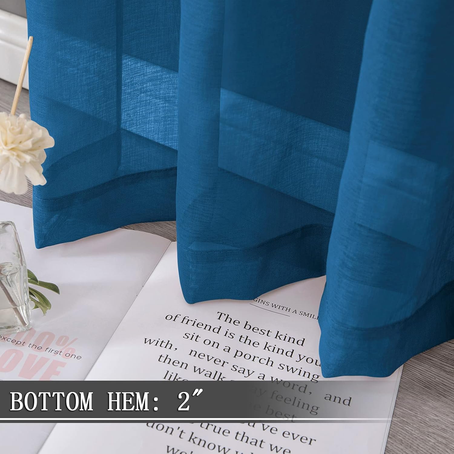 - Light Filtering: The linen look classic blue sheer curtains can allow the right amount of natural light through to bring your room a hazy and softer vision, keep you away from someone’s glance from outside and provide you some privacy.