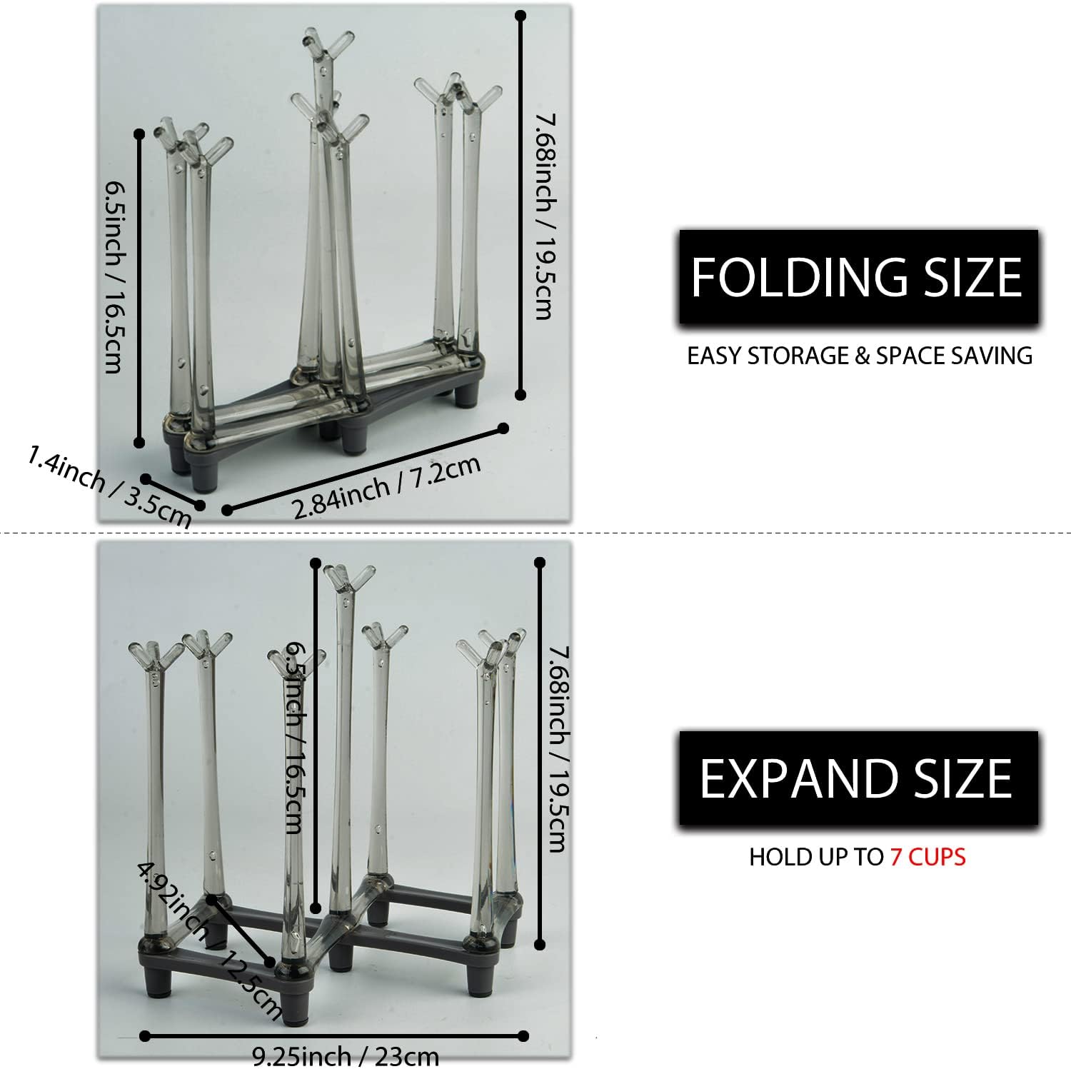 - Unique Retractable Design: The foldable cup drying rack can be easily adjusted to fit cups, mugs or bottles of different sizes, to meet different demands of using. When fully folded, the size is only about 19.5 x 17 x 5 cm (7.68 x 6.69 x 1.97 inch), very easy to store when not in use.