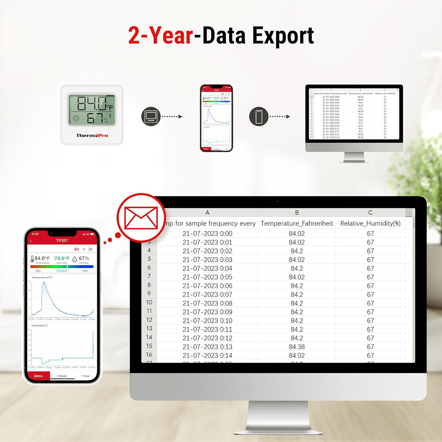 - Smart App with Alerts: Set a temperature gauge range via the ThermoPro Sensor and instantly receive a phone notification if the temp and humidity monitor levels fall outside of your range, allowing you to quickly react to make necessary adjustments; Have a private and secure App! ThermoPro App do not register user information, which further protects user privacy