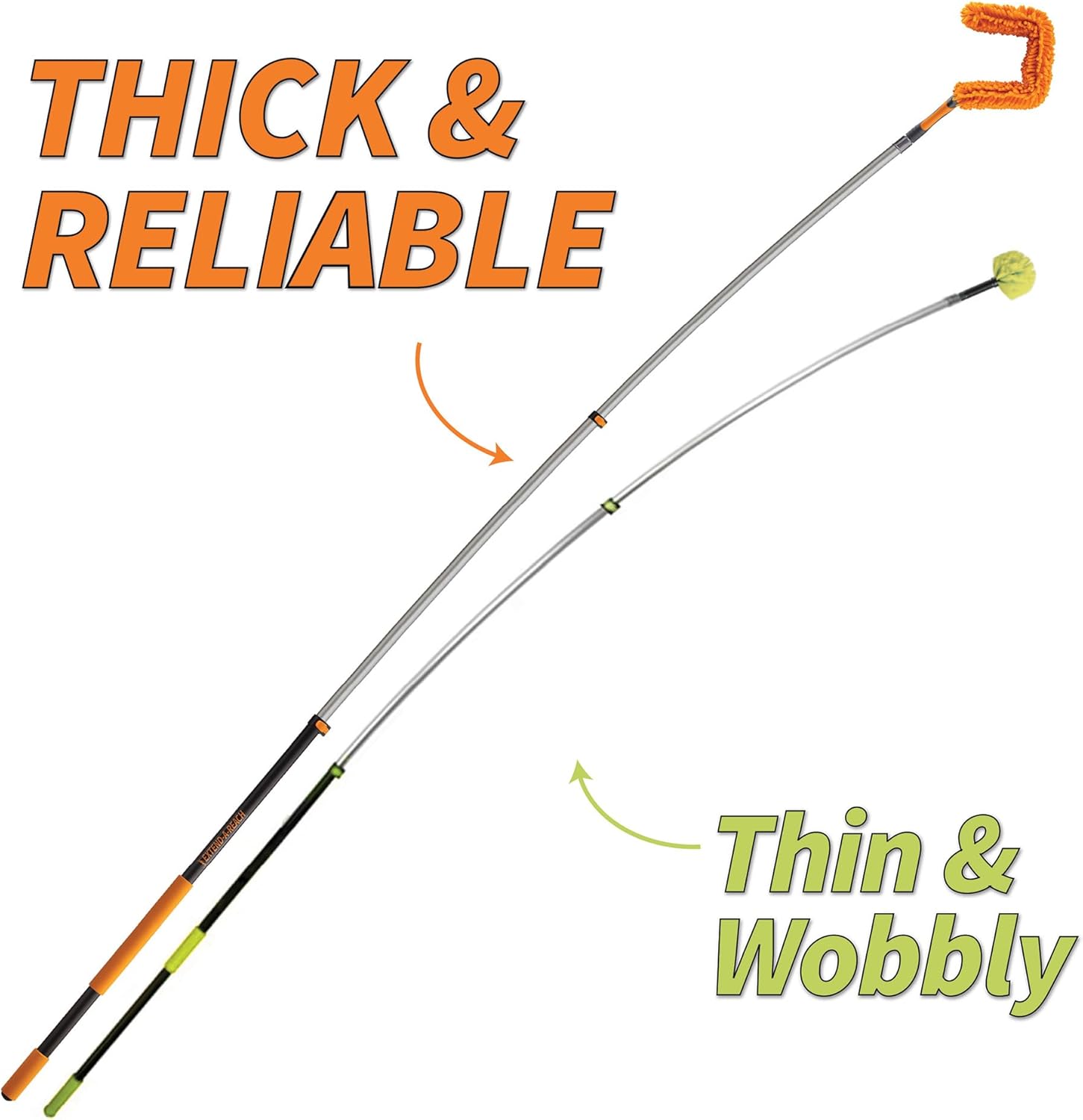 - ăTHE ONE EXTENSION POLE THAT WONâT BREAKă- Made of meticulously-crafted, extra-thick aluminum, this extendable telescopic pole is stiffer, tougher, and stronger. While other high reach extension poles can get wobbly and fragile when fully extended, the EXTEND-A-REACH telescopic pole will always perform solidly. The pole also features quick-release thumb lever clasps for easy extension control and non-slip hand grips to ensure maximal stability and reliable grip.
