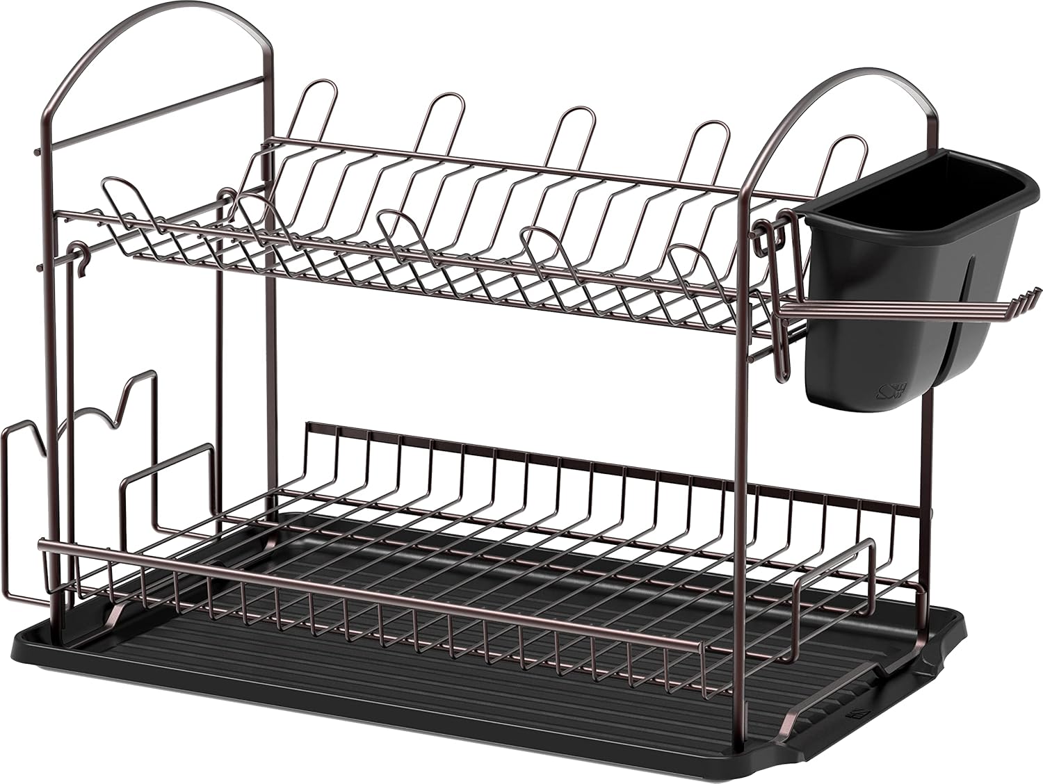 SIMPLE HOUSEWARE 2-Tier Dish Rack with Drainboard, Bronze