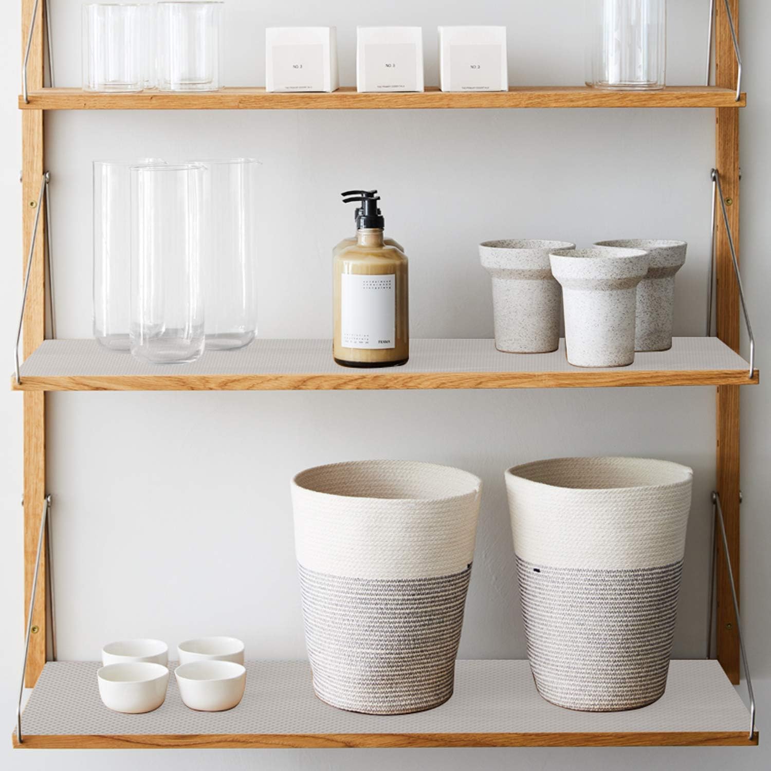 - SAFE MATERIAL AND NON ADHESIVE: Our kitchen shelf liner is made of high quality food-graded material, which is soft and durable without odor or BPA. So it is safe to be used directly in contact with fruit and vegetable. Whatβs more, the drawer liner is non-adhesive so you can easily remove to clean or to change the liner.