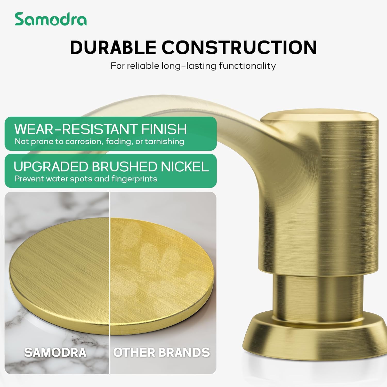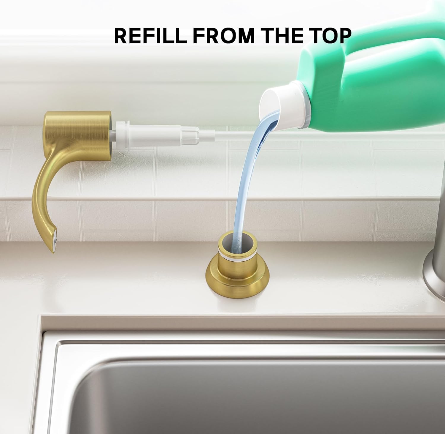 SAMODRA Built in Kitchen Sink Soap Dispenser (Brushed Gold) with 12 oz Large PET Lotion Bottle, Refill from Top