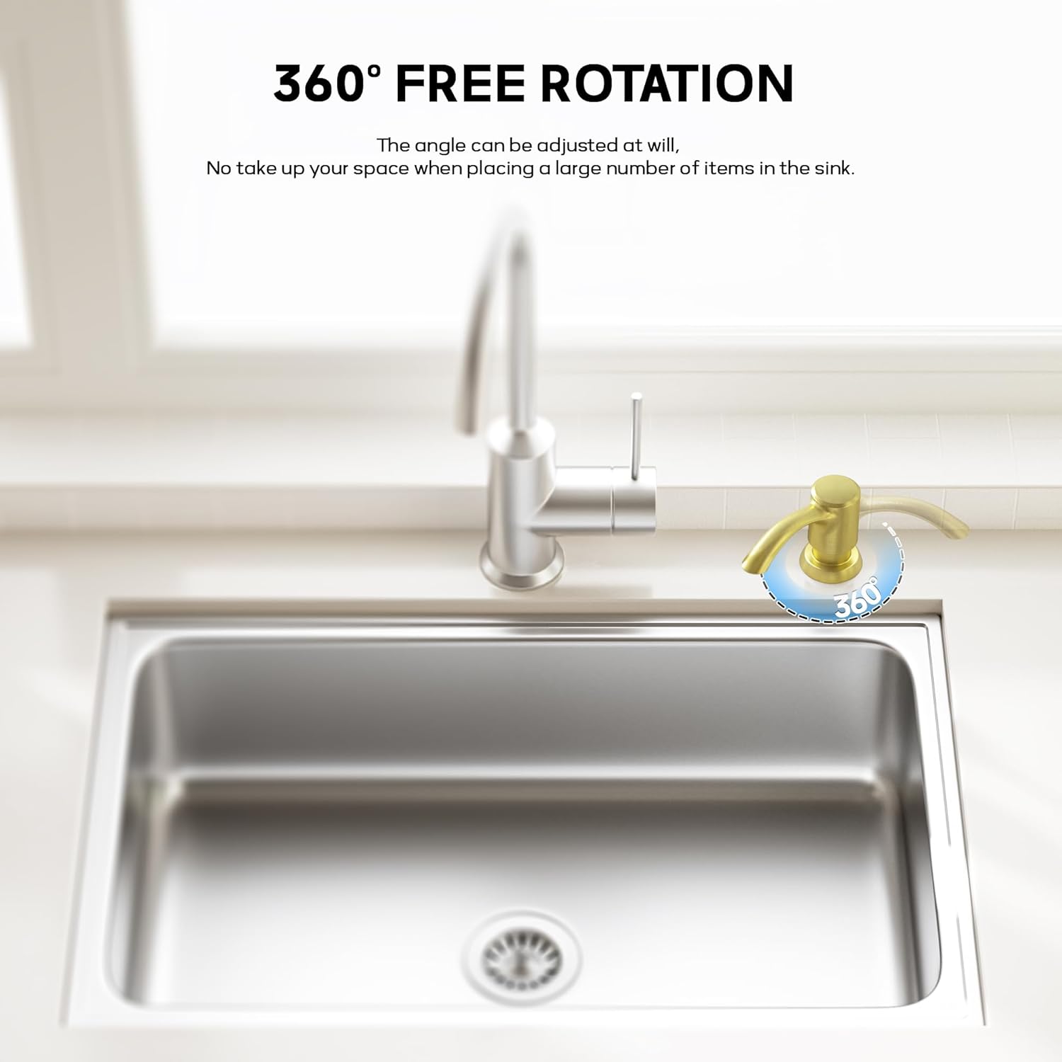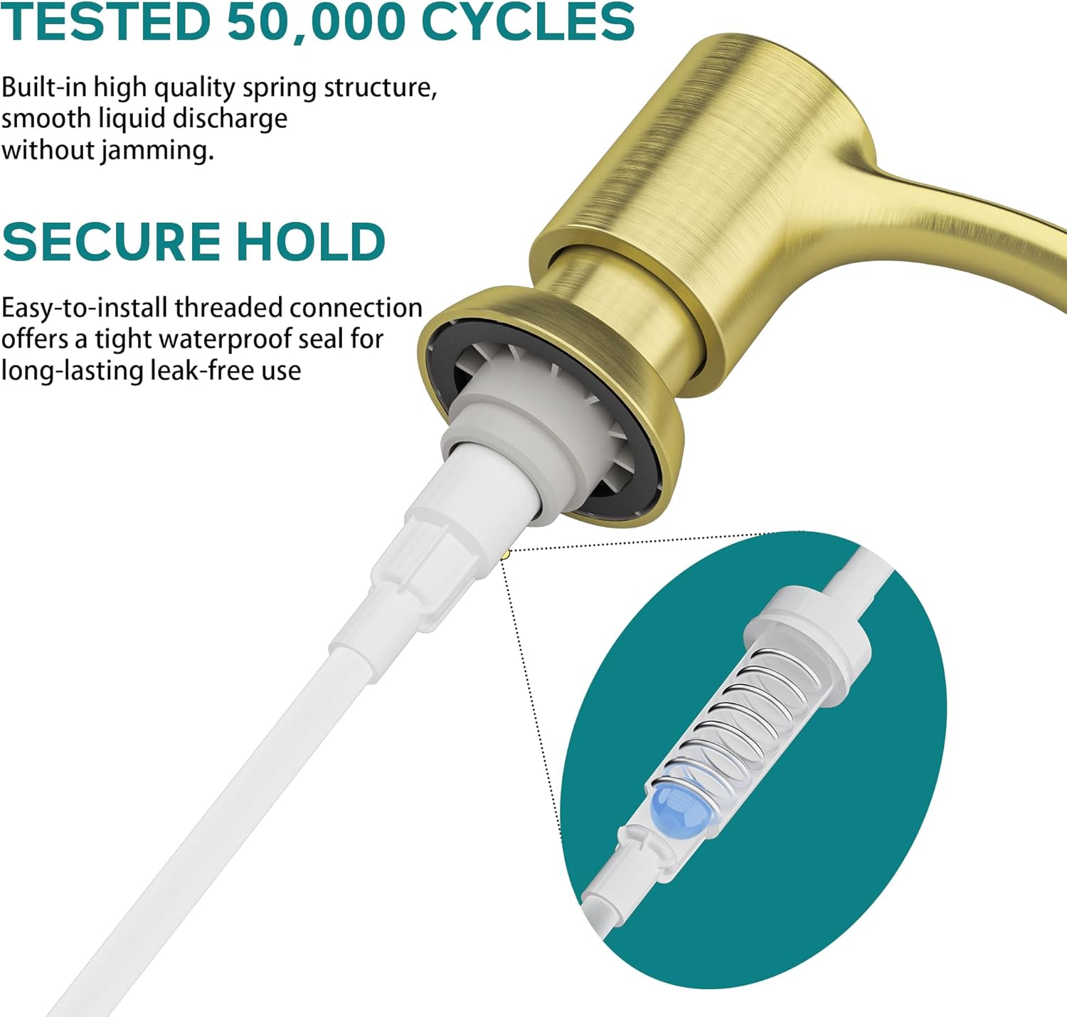- 【Seamless Coordination】- The dispenser complements most gold kitchen faucets, enhancing the overall aesthetic of your sink area. It contributes to a neater, cleaner, and more efficient kitchen environment.