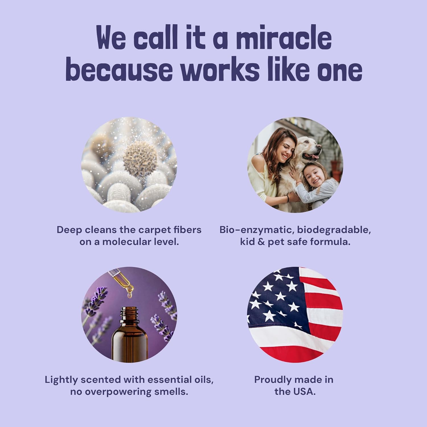 - Ultimate Carpet Solution: Sunny & Honey Carpet Miracle is your secret weapon for a guest-ready carpet during the holiday season. Compatible with any carpet cleaner machine, it fights tough stains and freshens your home with a light lavender scent