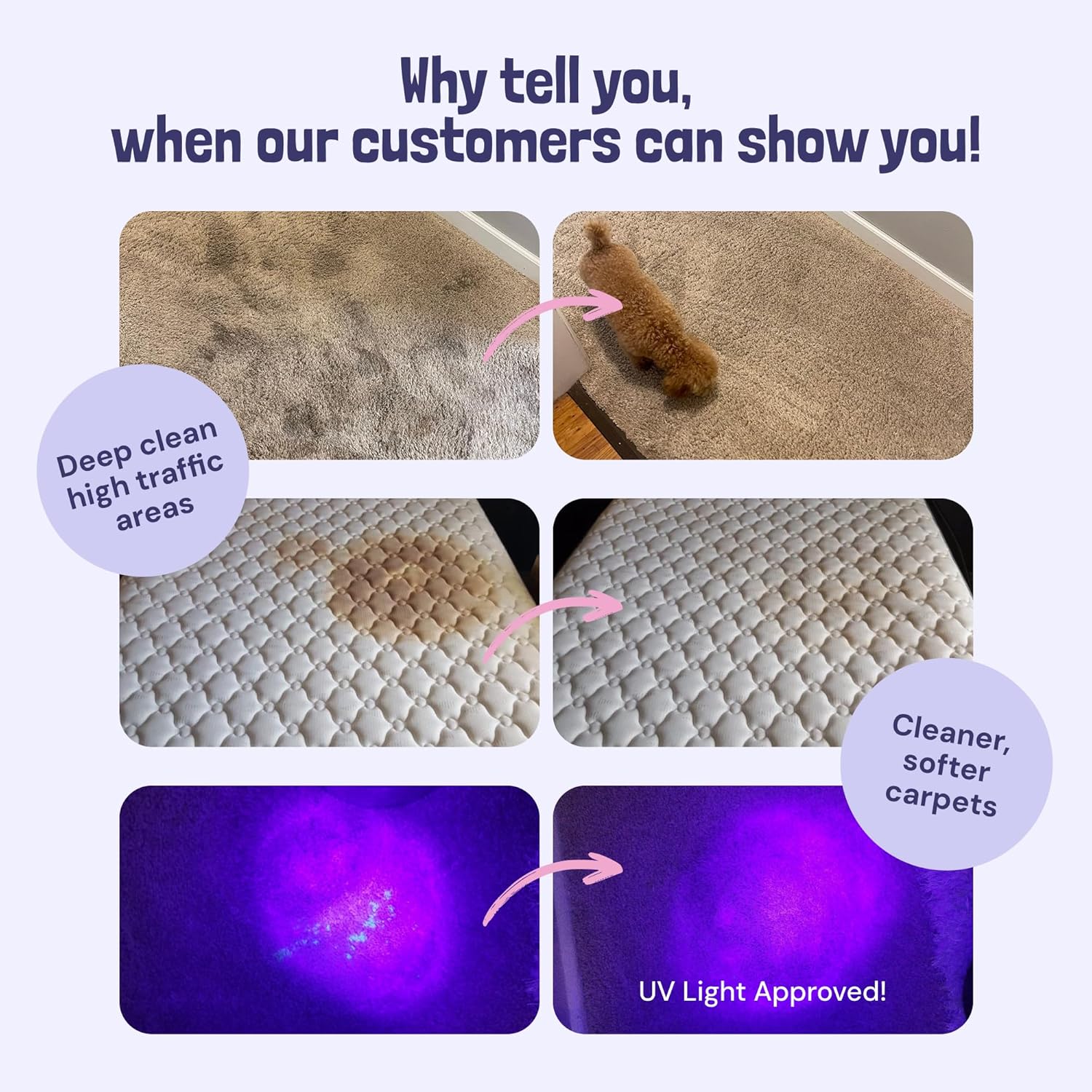- Safe for Families and Pets: With clean ingredients, our carpet cleaning solution is ideal for homes with kids and pets. This cruelty-free pet carpet cleaner solution maintains freshness without harsh odors, perfect for making your home festive-ready