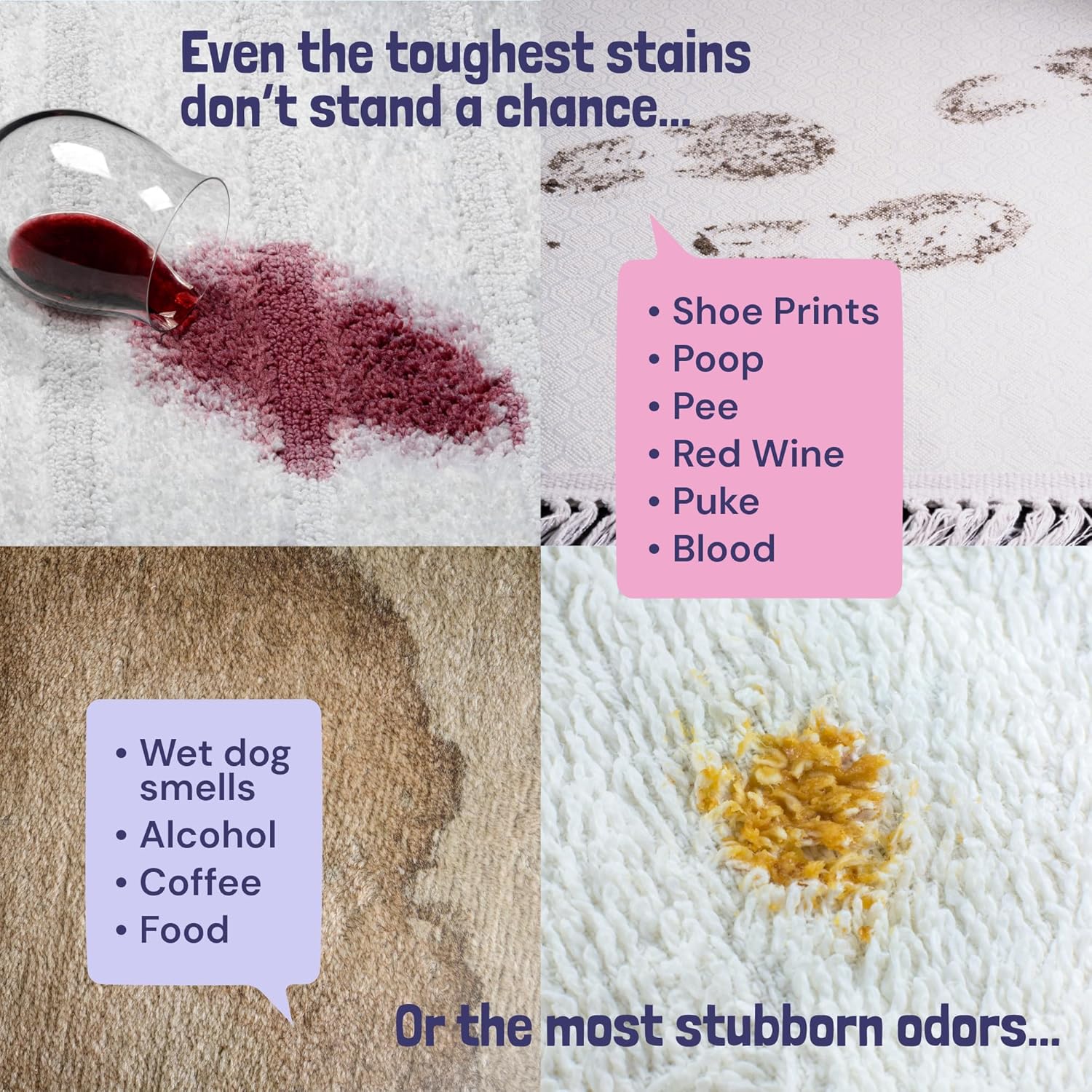 - Heavy Duty Stain Buster: Tackle old stains from holiday parties with this powerful pet carpet cleaner solution. Just a small amount of our concentrated carpet cleaning solution works wonders, making it the perfect carpet stain remover for parties