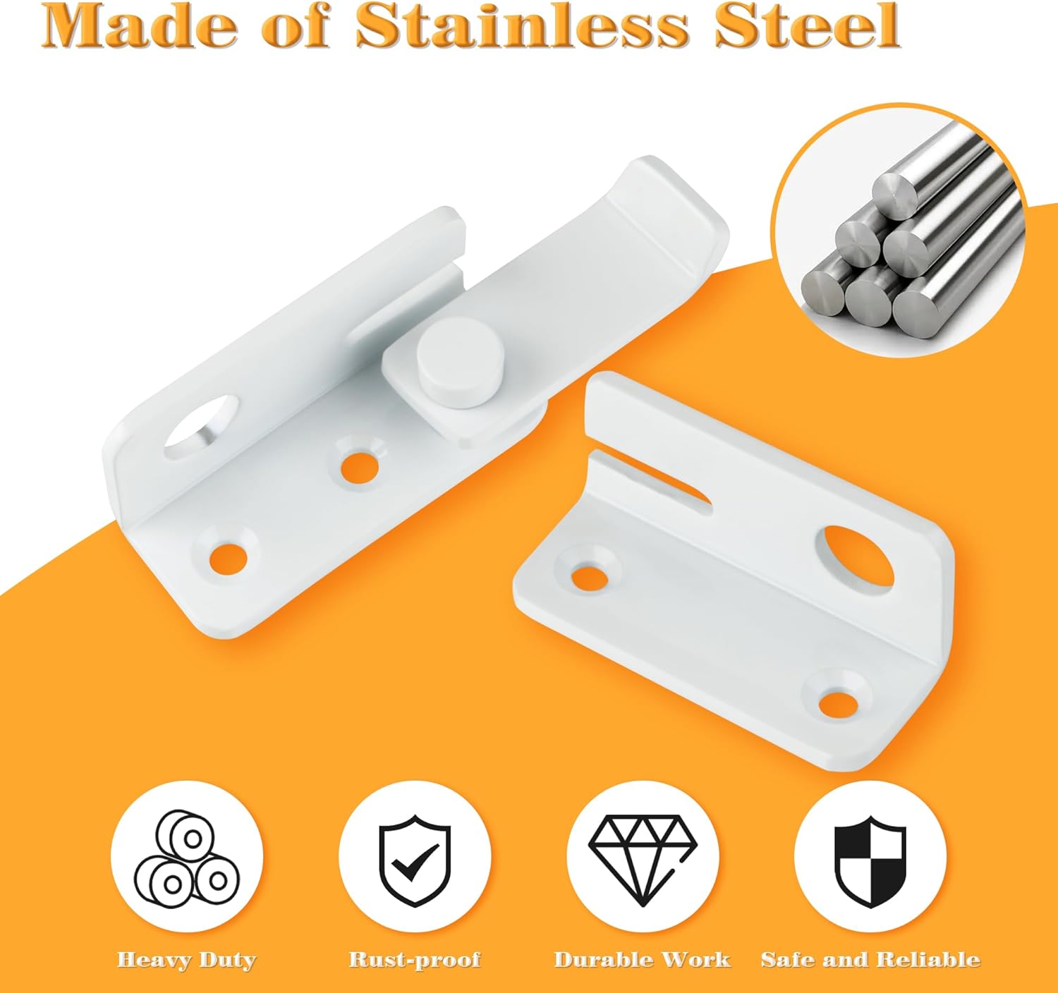 Alise Flip Latch Gate Latches Slide Bolt Latch Safety Door Lock Catch for Barn Cabinet Pet Cage Garden Bathroom Garage Window Sliding Door,Stainless Steel White Finish MS3006R-W