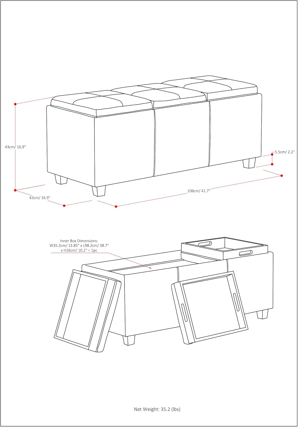 - Shape Rectangular : Item Weight 35.2 Pounds