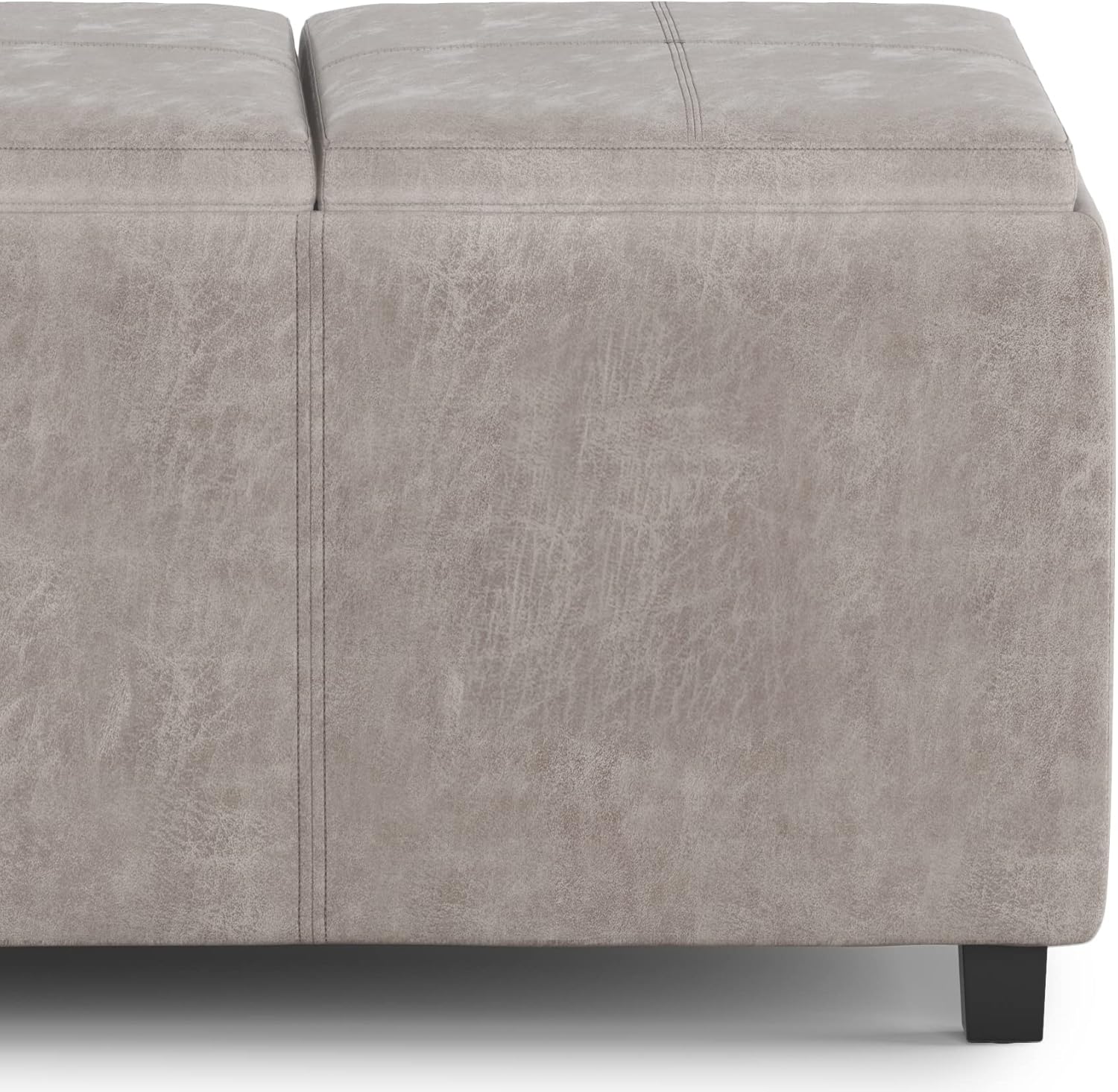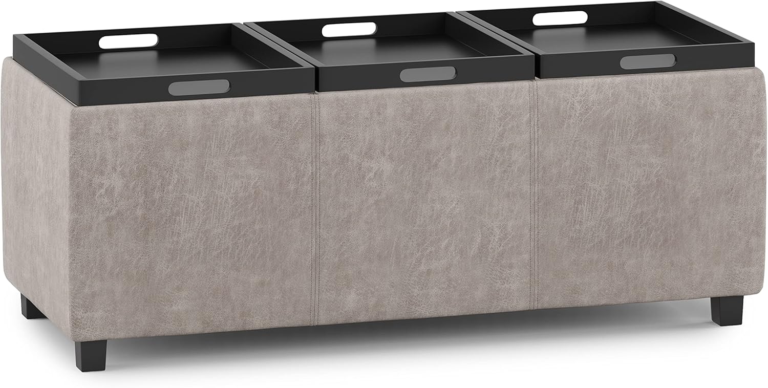 SIMPLIHOME Avalon 42 inch Wide Contemporary Rectangle Storage Ottoman in Distressed Grey Taupe Vegan Faux Leather, Assembled, for the Living Room, Entryway and Family Room