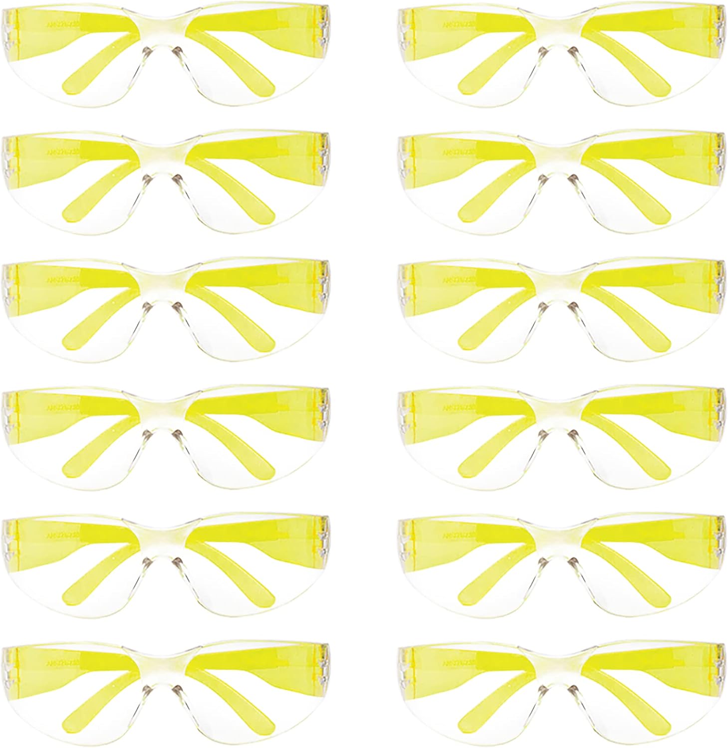 - Color & One Size Fits Most – Fits adults, teens, and older children. 12 piece pack of yellow safety glasses. Usage can include, but is not limited to: Medical, Industrial, Dental, Construction, Janitorial, School, Daycare, College, etc.